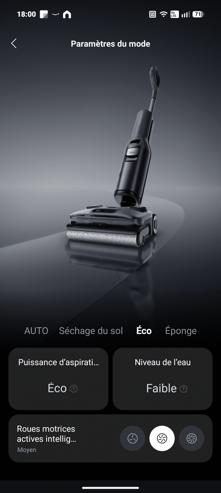 L’application mobile ajoute quelques options. On peut suivre l’entretien. On reçoit aussi des alertes. Je l’ai beaucoup utilisée, notamment pour la première configuration. Ensuite, l’’écran sur la poignée suffit pour ceux qui préfère l’indépendance. Il affiche l’état du nettoyage. En outre, il indique le niveau de batterie.