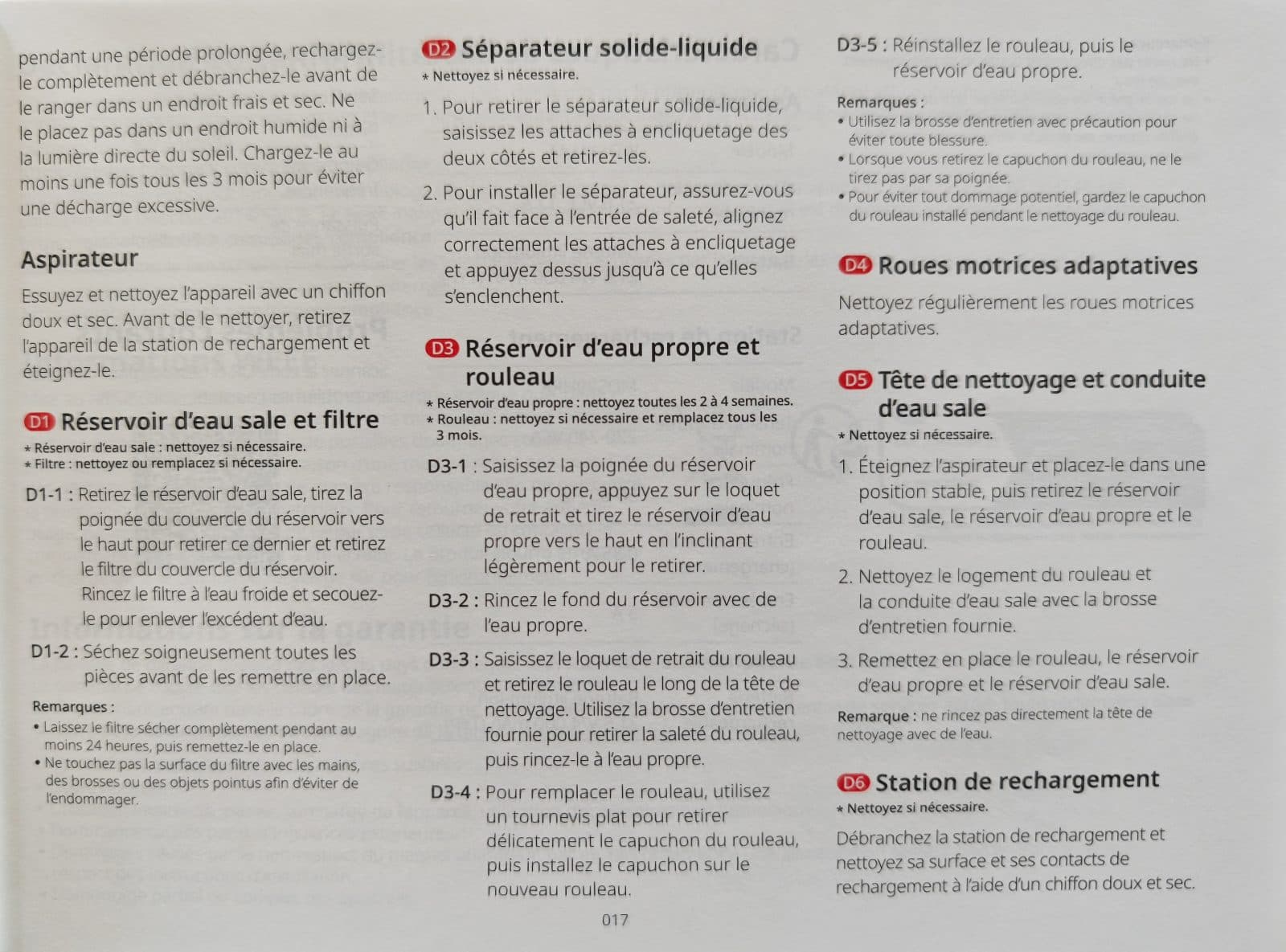 Je l’utilise principalement après les repas. Les enfants laissent souvent des miettes. Avec un aspirateur classique, je dois repasser avec une serpillière. Ici, un seul passage suffit. C’est le principal gain. Ceux qui ont un animal de compagnie connaissent également aussi le problème des pattes mouillées. Cela laisse toujours des traces au sol, le F25 ACE Pro intervient, problème réglé