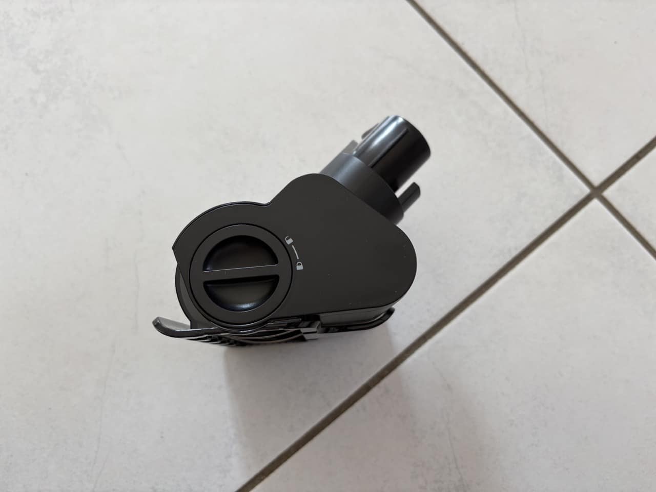 Le bac à poussière, d’une capacité de 0,44 L, se vide facilement, mais il n’est pas le plus pratique du marché. Il faut parfois un peu manipuler le couvercle pour éviter que la poussière ne s’échappe. Rien de dramatique, mais sur un produit de cette gamme, on aurait aimé un mécanisme plus fluide.
