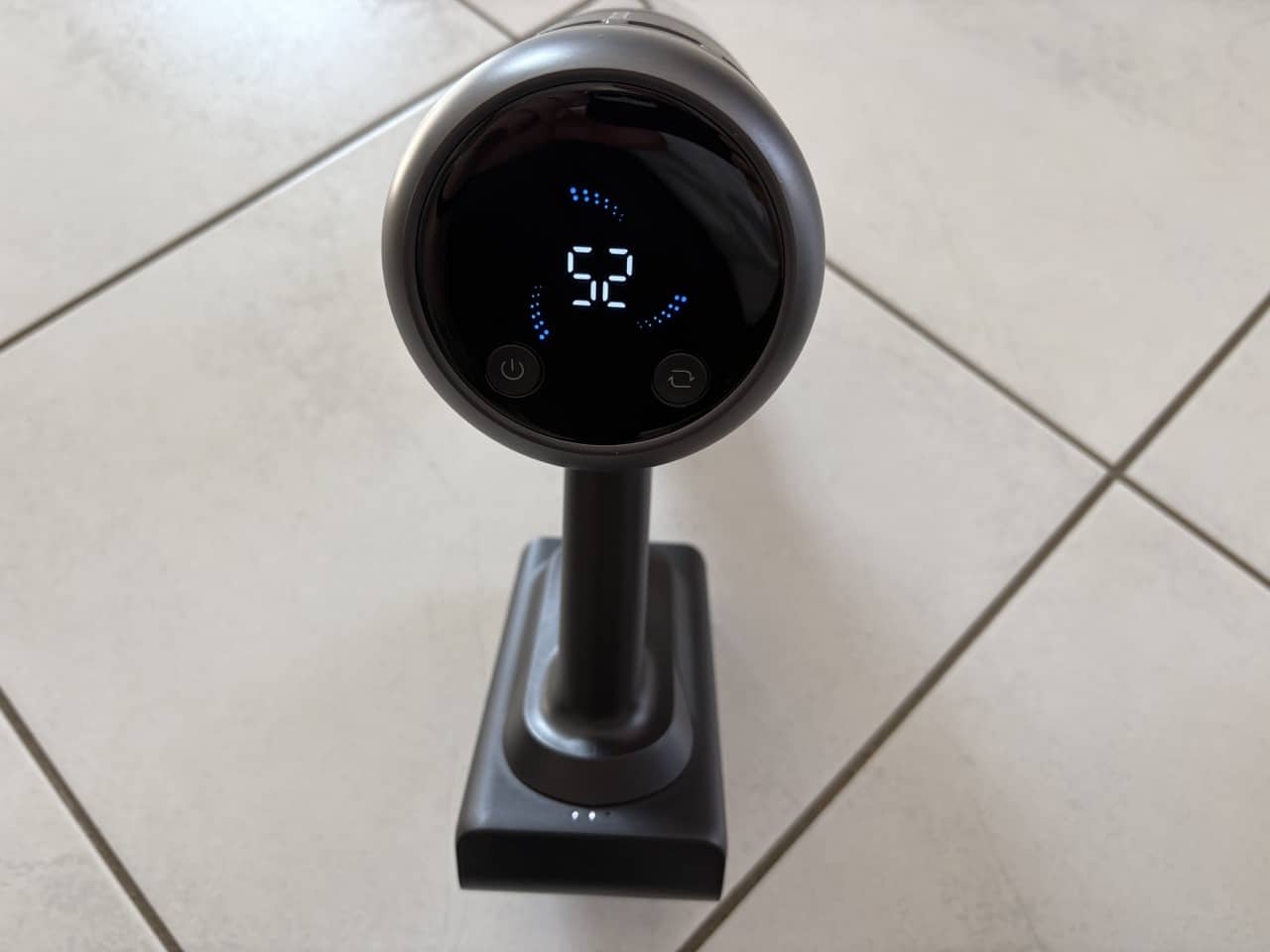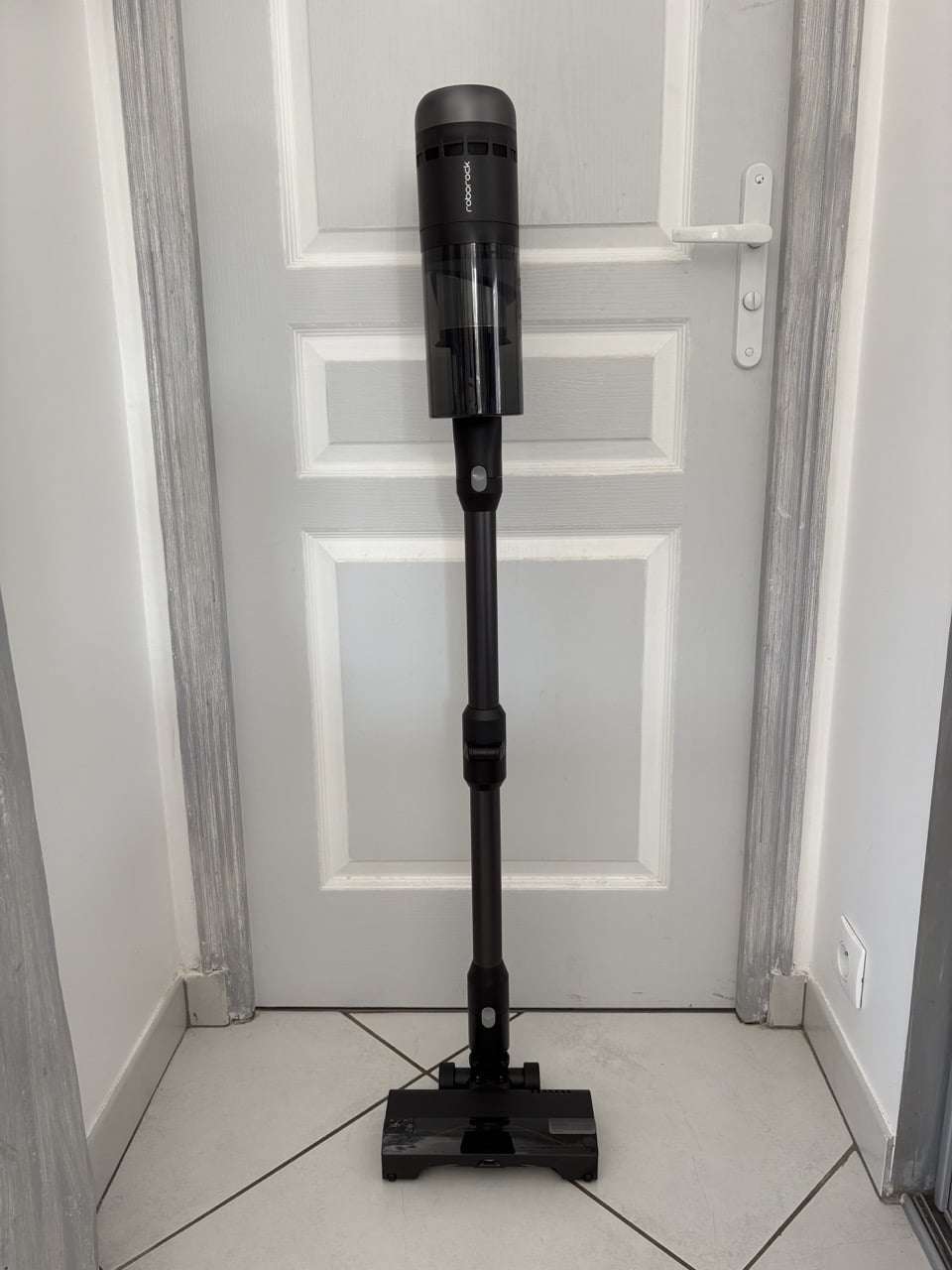 L’ensemble est à la fois élégant et sobre, typique de Roborock, avec des matériaux solides et une finition irréprochable. Sur la poignée, un écran LED affiche en temps réel le niveau de batterie, le mode d’aspiration et les alertes d’entretien. C’est propre, lisible et bien intégré. L’appareil reste léger à l’usage, autour de 1,7 kg en main, ce qui rend les sessions longues beaucoup plus agréables.