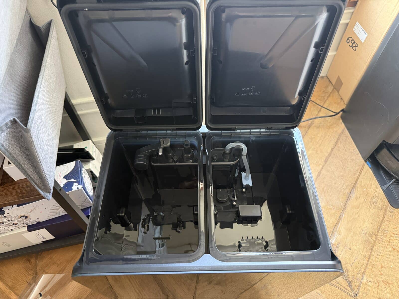 En mode lavage, le robot déploie ses patins serpillières avec efficacité, les retire automatiquement lorsqu’ils ne sont pas nécessaires et adapte la pression selon la surface. Le résultat est propre, même si certaines zones très encrassées nécessitent plusieurs passages. L’autonomie est largement suffisante pour un nettoyage complet d’un grand logement, et le retour automatique à la base pour se recharger fonctionne sans accroc. Seule limite constatée : dans des passages très étroits, comme à côté d’un lit, le robot peut hésiter, voire éviter la zone. Un compromis compréhensible pour éviter les blocages, mais qui rappelle qu’aucun robot n’est encore totalement infaillible.