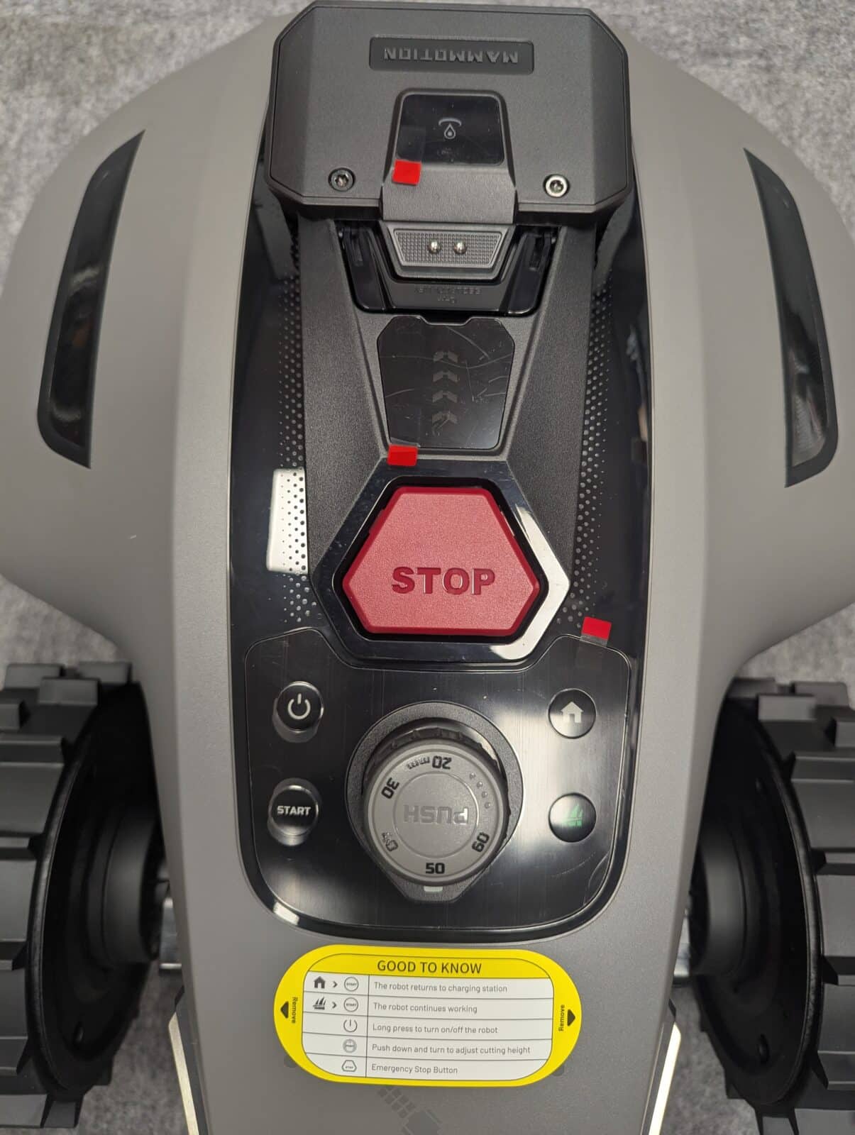 Cependant, nous avons relevé un problème de sécurité. Si le robot sort de sa zone de tonte et se retrouve en déséquilibre (par exemple, une roue dans le vide), il continue à tondre. Le plateau frotte potentiellement sur une bordure. Ce comportement devrait être corrigé par une mise à jour logicielle avec une détection d’inclinaison plus stricte.