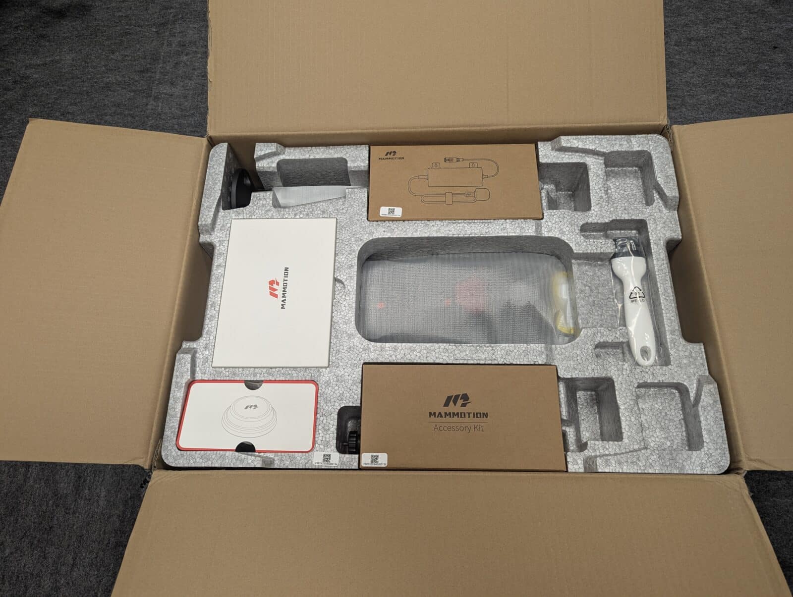 Dès l’ouverture du carton, le soin apporté à l’emballage impressionne. Le packaging est très qualitatif, digne de produits haut de gamme. Tout est parfaitement calé, prêt à l’emploi : le robot, la station RTK, les accessoires, et un guide rapide illustré. Ce feuillet d’aide est bien conçu pour les premières étapes. Toutefois, il manque parfois de clarté sur certains points techniques comme l’alimentation indépendante de l’antenne RTK, qui demande une prise secteur à proximité.