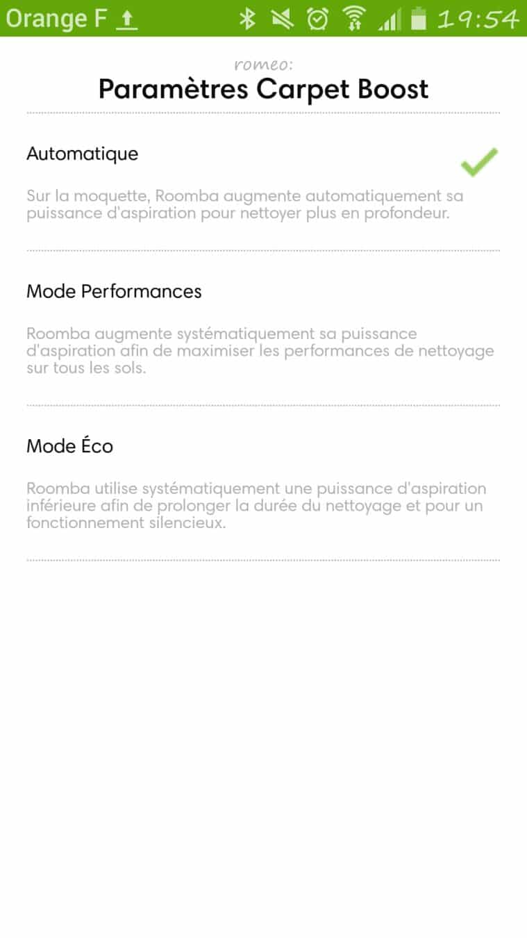 Avec le Roomba 980 nous avons droit à l’aspirateur robot le plus haut de gamme de la marque et le seul à proposer le système CarpetBoost, en adaptant sa puissance sur les moquettes et à être connecté en wifi sur le réseau domestique. Il est également le seul modèle pouvant être configuré et géré avec l’application iRobot sur iOS et Android.