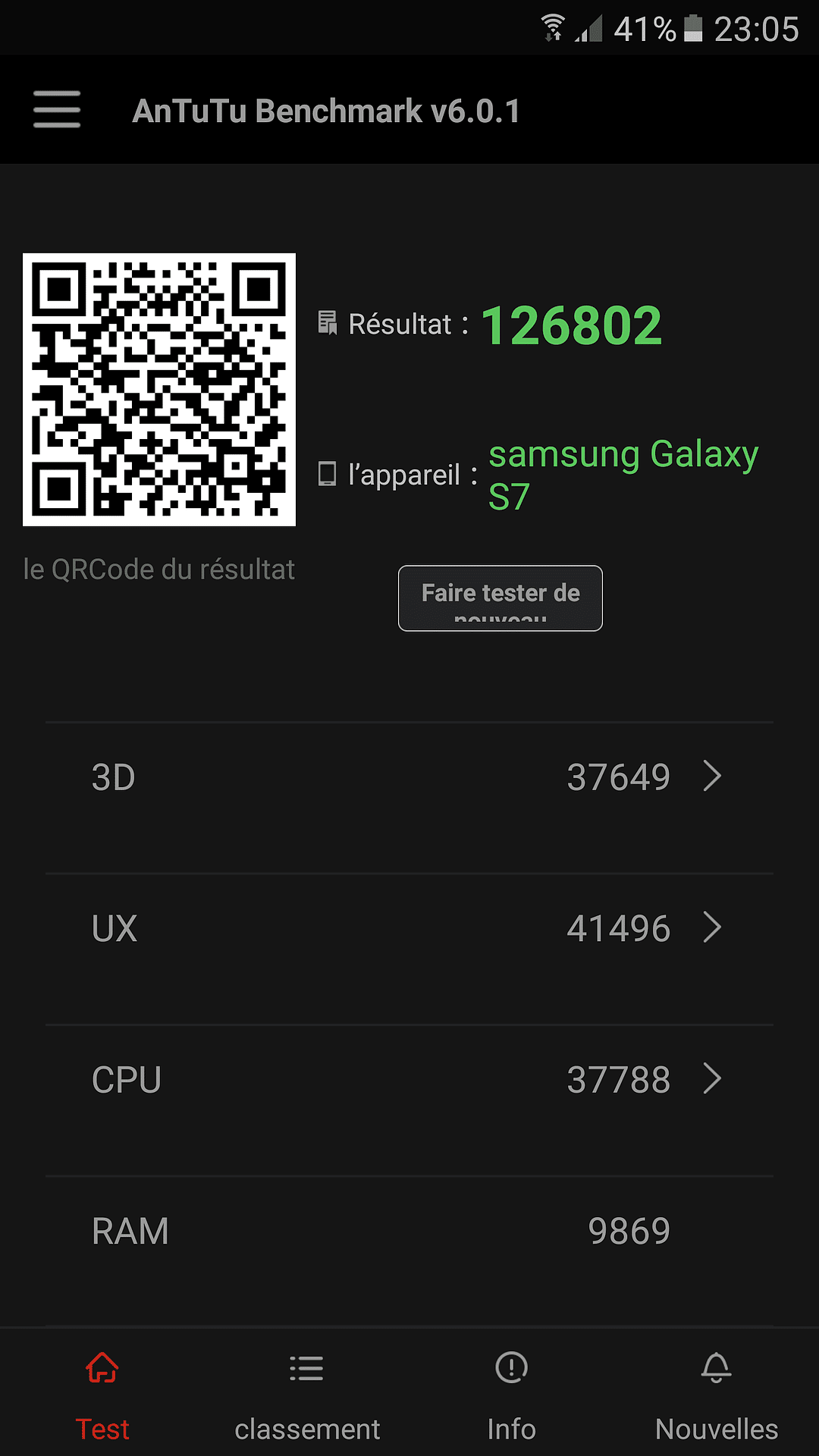 Maintenant que le tour du propriétaire est fait, rentrons dans le vif du sujet avec les performances brutes de ce beau bestiau. Comme d’habitude nous allons bien entendu passer par Antutu, mais également Citadel qui permet d’effectuer un benchmark 3D plutôt poussé. Sur Antutu c’est sans surprise que le Galaxy S7 dépasse la barre des 120 000. Certes ce score ne veut pas dire grand-chose (surtout lorsque des téléphones chinois atteignent des scores similaires, mais l’optimisation logicielle ne suit que rarement), mais dans notre cas le score est bel et bien mérité. Et ça se confirme donc avec le benchmark Citadel puisqu’il atteint la barre des 60FPS en moyenne avec son écran 2K et les graphismes poussés à leur maximum. Une belle prouesse !