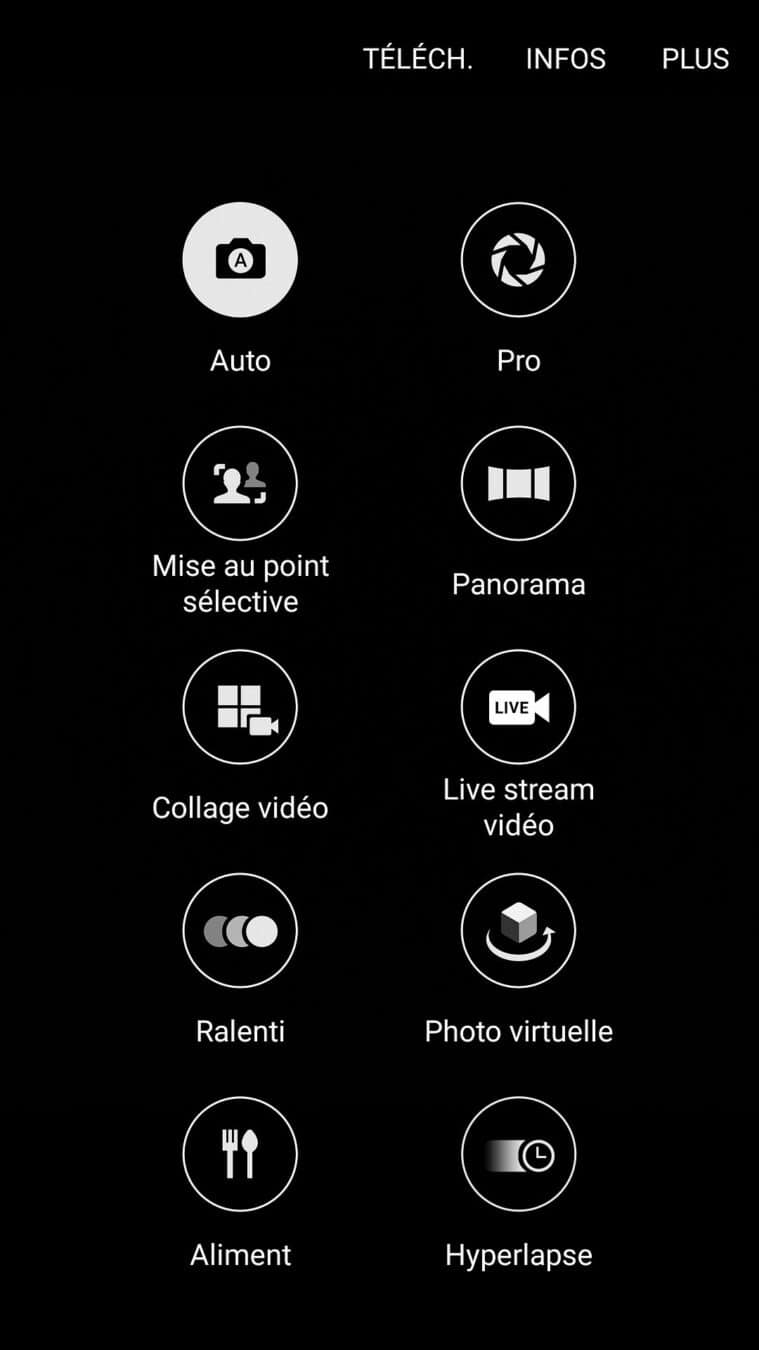 Les fonctionnalités intégrées à la surcouche Samsung sont également très intéressantes. J’ai déjà mentionné ceux dédiés aux jeux, mais ce n’est pas tout. En effet les furieux de « screnehsots » seront ravis par la possibilité de prendre en capture d’écran toute une page, même ce qui n’est pas affiché à l’écran directement. Pour illustrer mes propos, voici un exemple sur la page d’accueil du site. Au menu encore, le tant attendu multi-applications qui permet enfin l’exécution de plusieurs applications en simultanées. Ici il y a le choix, soit les deux applications prennent chacune la moitié de l’écran, soit il est possible de les gérer réellement comme des fenêtres et il est ainsi possible d’exécuter plus de deux applications simultanément. Revenons maintenant à la partie photo de ce Galaxy S7. De nombreux « modes » sont disponibles pour celui-ci et parmi la liste il faudra surtout retenir la possibilité de faire des ralentis en 720 p à 250 images par secondes, la présence d’un mode « hyperlapse » ainsi que bien entendu le mode « Pro » pour les plus amateurs d’entre nos lecteurs. Il est également possible de télécharger d’autres modes via le Samsung App Store.