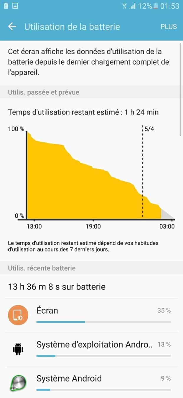 Finissons sur un point plutôt positif. Quid de l’autonomie de ce monstre ? Qu’a-t-il dans les entrailles pour alimenter son écran rempli de pixels et son processeur surpuissant ? Et bien c’est une batterie non amovible de 3000 mAh qui est en charge d’une des parties les plus importantes d’un smartphone. Et je suis un peu déçu par les résultats. Certes il s’en sort bien, mais pour un téléphone situé dans cette gamme de prix (aux alentours de 600 € sur Amazon) je m’attendais à mieux bien que les résultats soient supérieurs à la moyenne. Il aura fallu un peu plus de 13h30 et 4h d’écran allumé pour en venir à bout. Autant dire que si vous vous servez beaucoup de votre téléphone dans la journée, prévoyez un chargeur d’appoint.