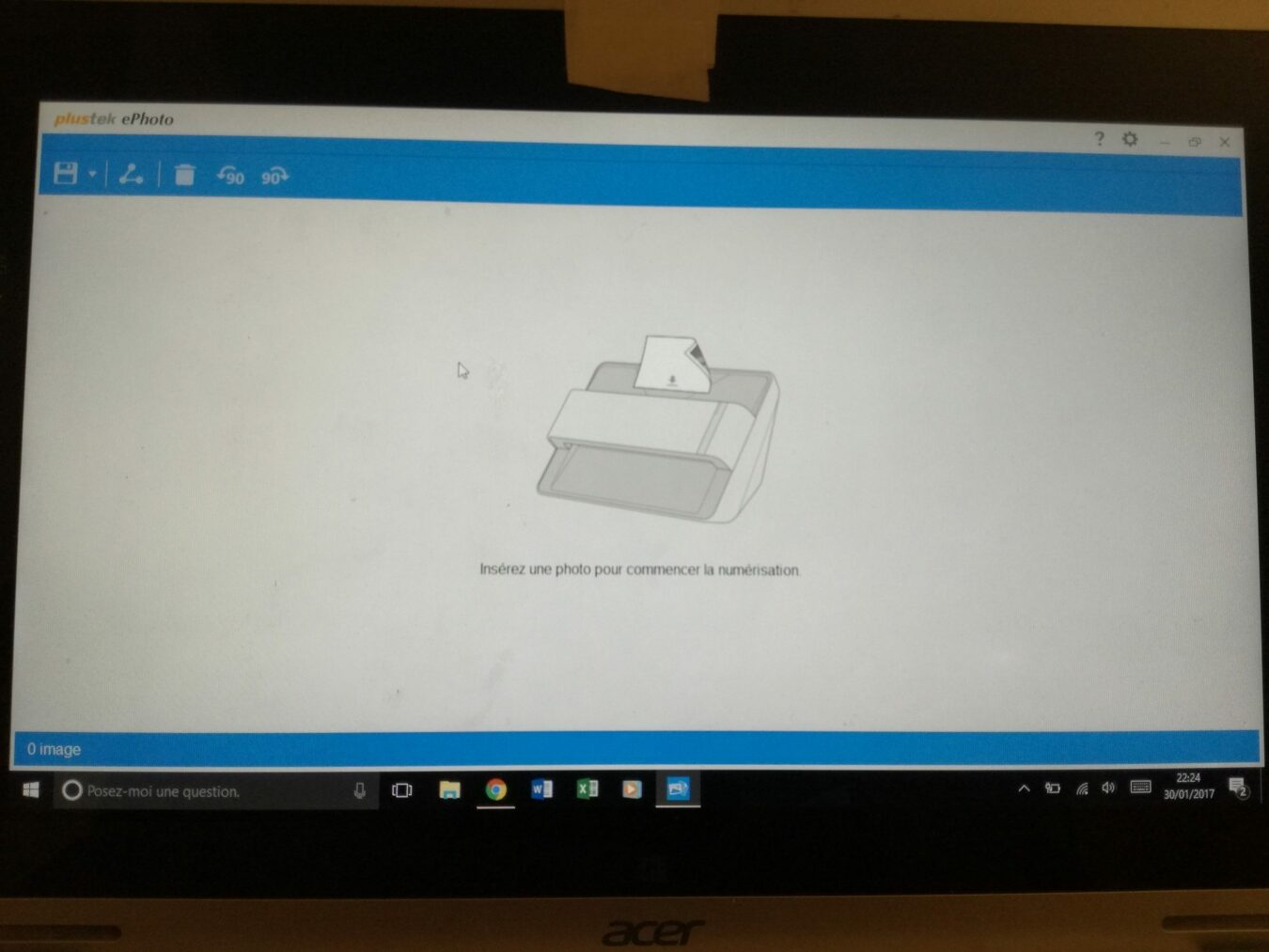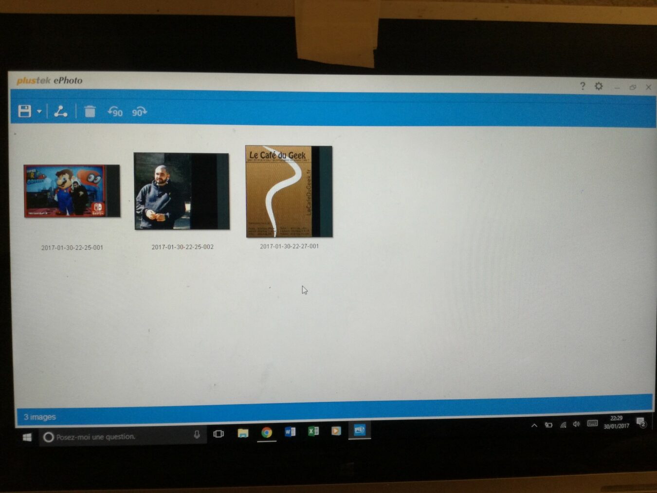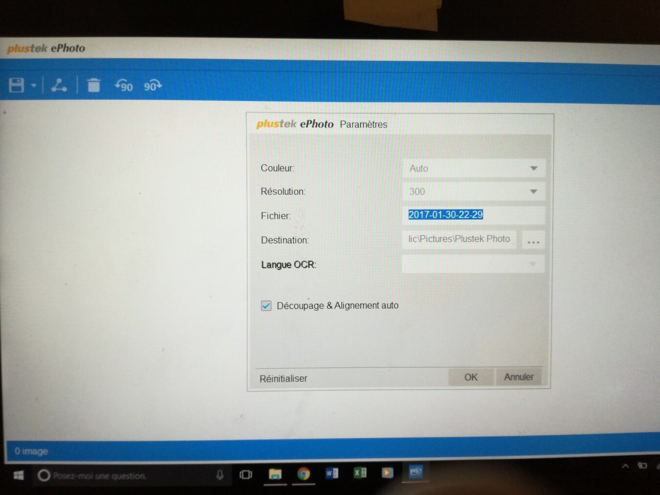 Une fois le document scanné il se glisse dans une interface et nous avons le choix ou non d’enregistrer le scan. Aussi il y a une possibilité de retouche assez faible, mais suffisante pour des modifications minimes, heureusement il y a possibilité d’utiliser Photoshop Element sous Windows 10.