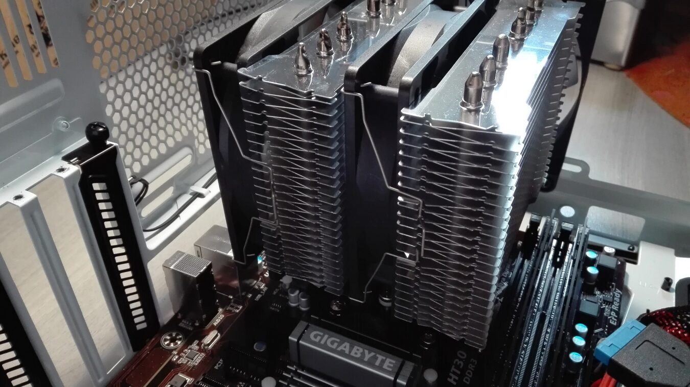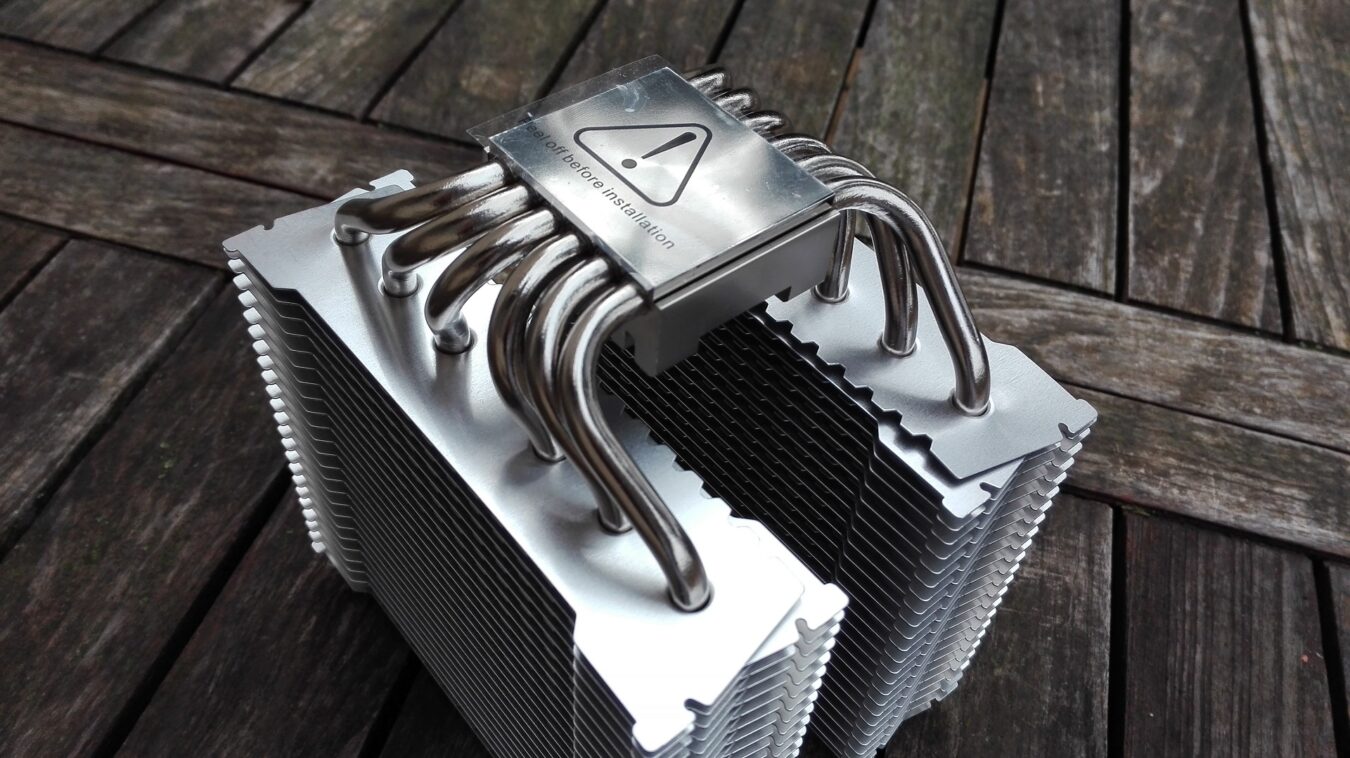 On retrouve donc sur ce modèle un format double tour, composé de 47 ailettes en alu. La base est en cuivre et les caloducs, au nombre de 6, sont quant à eux en cuivre nickelé. Le problème des ailettes en aluminum est la resistance de celles-ci. En effet dès reception du produit, j’ai pu remarquer qu’une des ailettes du haut était tordue. Rien de grave je vous rassure, mais il faut avouer que ça peut faire un peu peur quant à la qualité globale du produit. En dehors de ça, la finition est remarquable et respire la qualité.