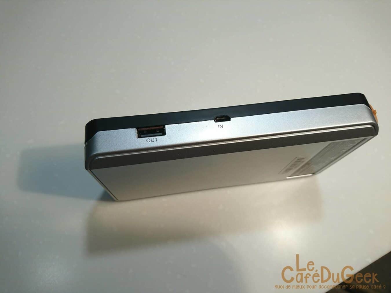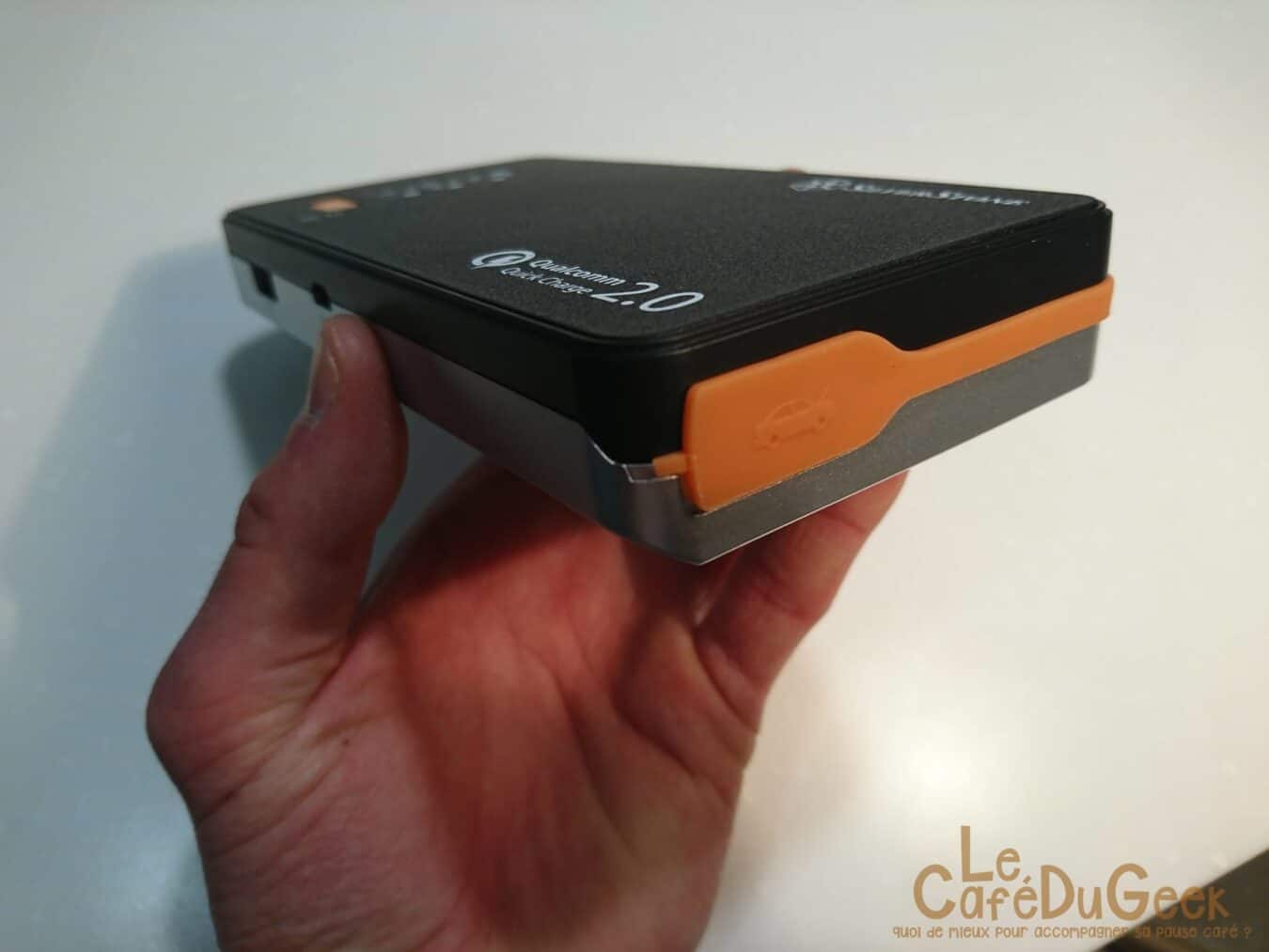 Niveau connectique tout est basique, si ce n’est la présence d’un port supplémentaire. En effet, du fait de sa capacité à démarrer un véhicule il faut bien de quoi brancher les prises dites croco. Pour cela, et en plus des ports USB d’entrées et de sortie (ce dernier délivrant jusqu’à 2.1A pour un chargement rapide), la PB06 dispose d’une fiche spéciale. Afin de pouvoir démarrer un véhicule, elle est capable de délivrer pas moins de 400A !