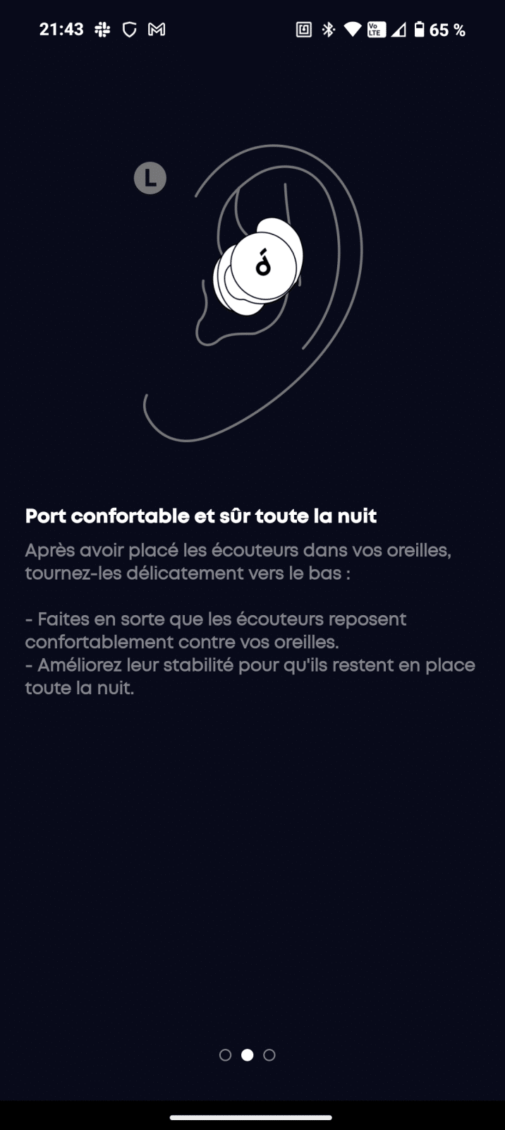 Pendant la nuit, j’ai pu bouger, changer de côté, les A20 sont restés stables. La fonction “find my earbud” est utile lorsque l’un tombe hors du conduit, les écouteurs émettent un bip même s’ils sont enfouis dans les draps (tant que la charge le permet).