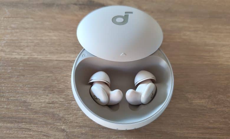 À l’intérieur de la boîte du Sleep A20, on trouve les deux écouteurs, un boîtier circulaire compact (avec couvercle coulissant), un câble USB-C, un guide rapide multilingue, ainsi qu’un lot d’embouts et de wing tips interchangeables. Le packaging est soigné et minimaliste, typique des produits Soundcore.