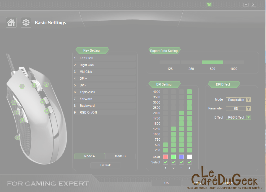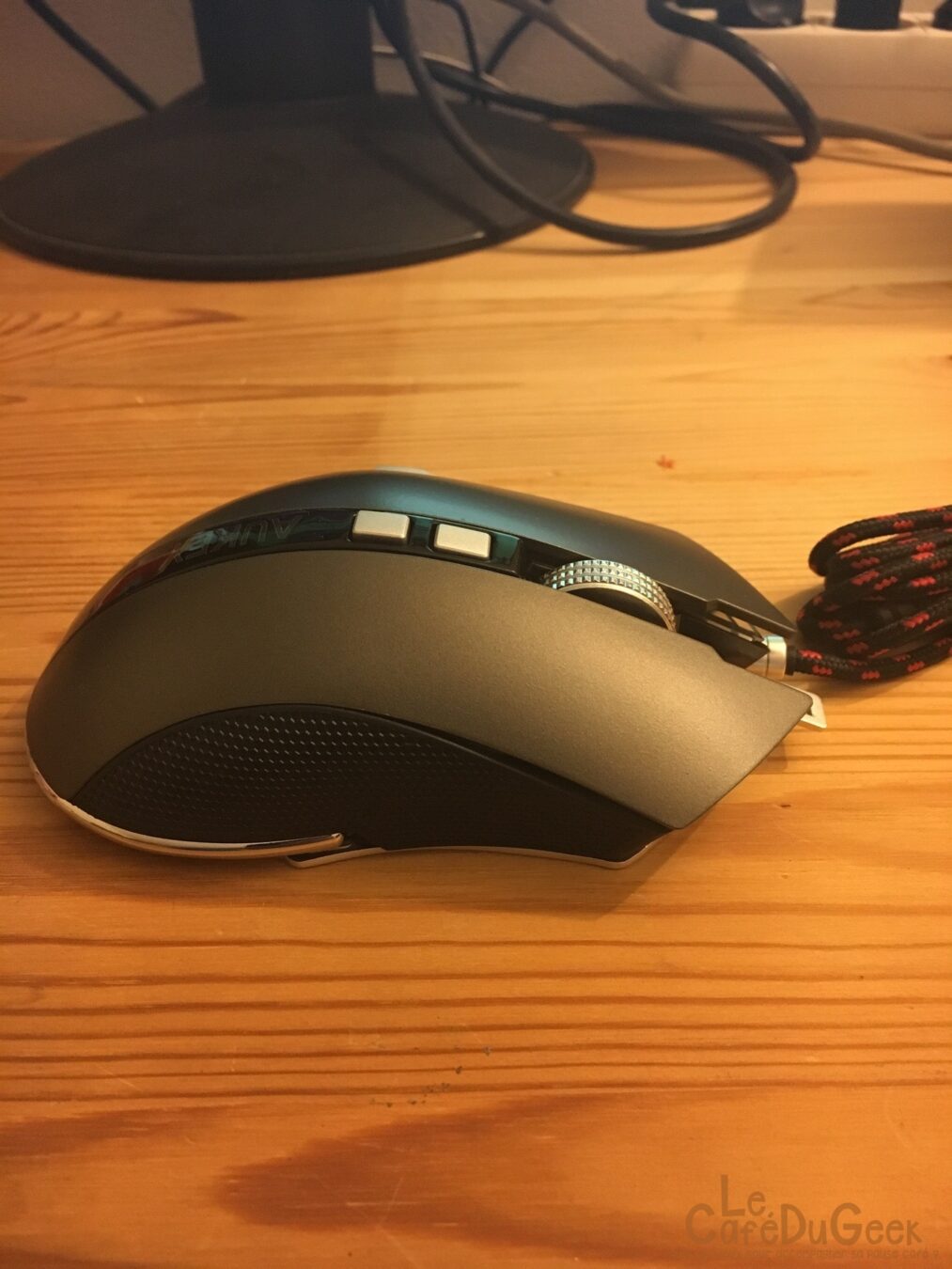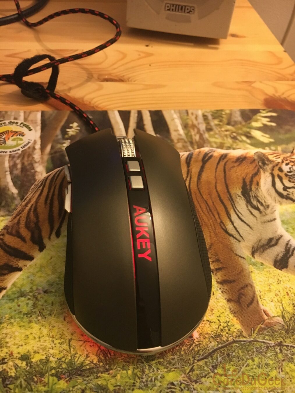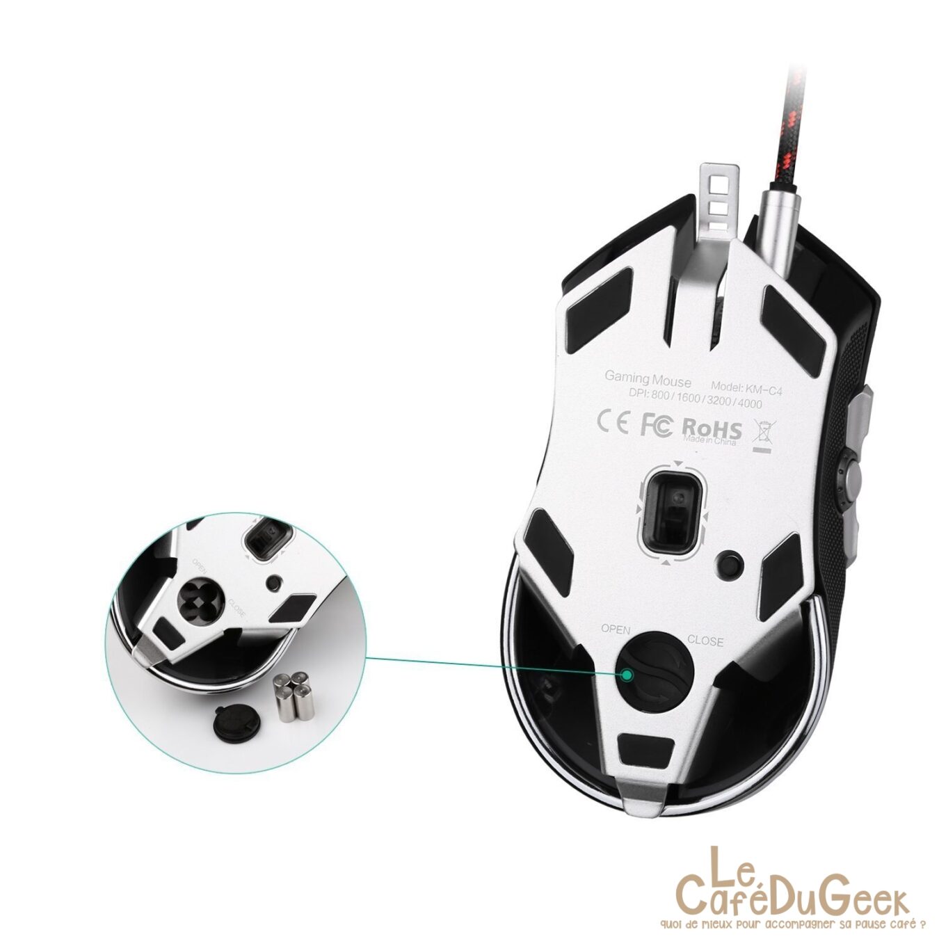 Comme fréquemment avec les produits Aukey, vous bénéficiez de matériel de bonne facture avec un cout maitrisé. Cette souris gaming est complète. Elle dispose de neuf boutons programmables. La sensibilité est configurable sur quatre niveaux différents : 800 / 1600 / 3200 / 4000 DPI. Pour une maitrise parfaite lors de votre utilisation du périphérique, il est possible de modifier son poids. Une trappe sous la souris permet de retirer une masse pour ajuster selon vos désirs.