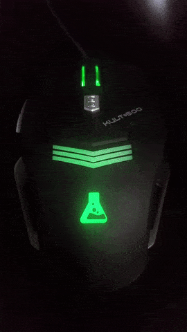 La G-Lab Kult 500 est une souris ergonomique. Elle tient un modèle relativement original avec son arrière ouvert et non plein constitué d’une boule projetant de la lumière colorée. Remplissant les traits et le logo G-Lab, la lumière s’échappe aussi des côtés de celle-ci. Avec sa base en métal, elle me semble bien plus glissante qu’une base en plastique. Ses côtés étant aussi en métal et dotés de petits trous, ils permettent une très bonne adhérence des doigts.