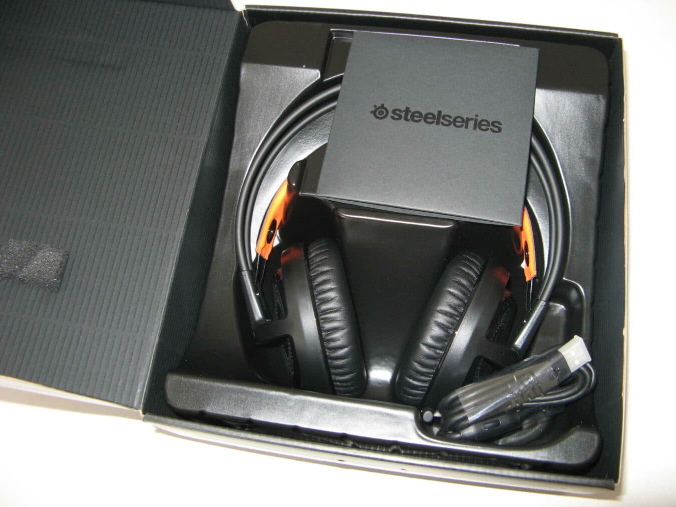 A l’intérieur de cette boîte nous retrouvons le Siberia 350, son câble USB mais également une petite pochette cartonnée avec une notice d’utilisation. La notice explique, de manière simplifiée, comment utiliser le casque et où se rendre pour les réglages poussés. Le casque est muni de quelques réglages qui font toute la différence avec d’autres casques : les illuminations sur le côté sont réglables, vous pouvez changer sa couleur, système de suspension, un bouton de coupure de micro, microphone rétractable, son surround DTS headphone x 7.1, contrôle du volume et bien d’autres paramètres encore.