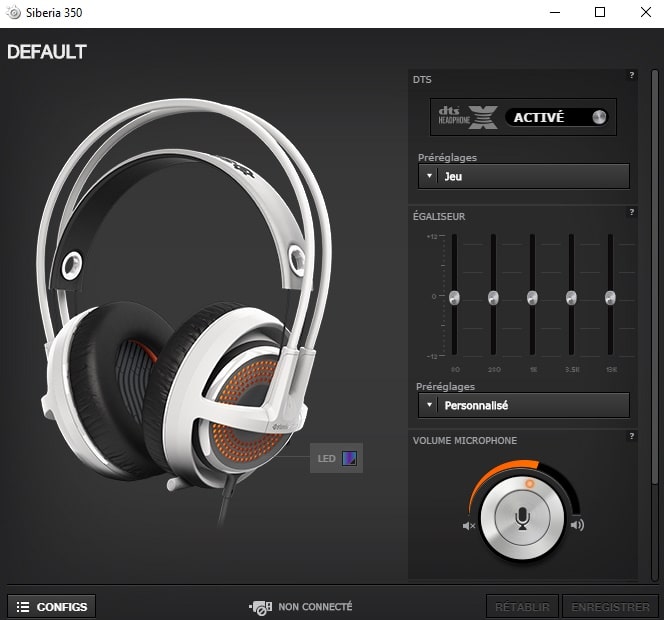 Comme je viens de vous le dire, je ne sais pas si vous l’avez remarqué mais le casque peut changer de couleur. Un logiciel à télécharger depuis le site de Steelseries nous permet alors de la modifier en toute simplicité. Dans les réglages vous pouvez également activer l’option DTS headphone X, ou encore régler votre casque en mode jeu, vidéo ou bien musique suivant vos préférences et utilisations. Le logiciel est trouvable ici.