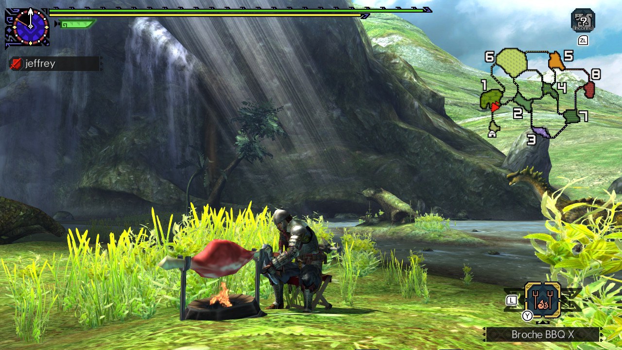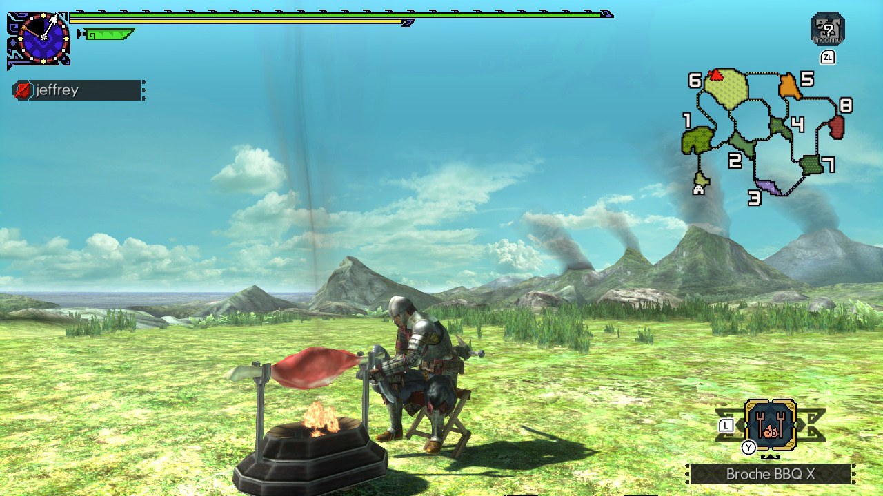 Ensuite, c’est l’heure du barbecue pour avoir des steaks à point et obtenir plus de stamina. Alors, c’est la recherche d’un nouveau monstre qui va jouer à cache-cache ou nous poursuivre. Enfin, c’est l’attaquer de front en se faisant souvent tuer si on n’y prend pas garde. Ou c’est l’esquive et l’astuce qui vont triompher d’un monstre hors norme. Pour terminer, après une partie de MHGU, on a envie de continuer pour chasser encore et encore, car c’est au plaisir de la chasse que l’on goute.