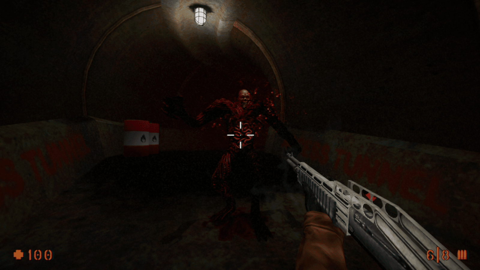 Ce que j’ai particulièrement apprécié, c’est le parti pris artistique. Le jeu adopte une esthétique low poly très marquée, qui m’a immédiatement rappelé les FPS des années 90. Impossible de ne pas penser à Half-Life dans sa manière d’utiliser les couloirs étroits, les zones industrielles froides, les laboratoires éclairés au néon et les salles de tests abandonnées. Mais attention : ce n’est pas un simple hommage nostalgique. Le style rétro sert ici la tension. Les textures volontairement simples, les angles abrupts et les éclairages tranchés donnent une dimension presque irréelle aux lieux. On ne sait jamais vraiment ce qui se cache au bout du couloir. Et ça fonctionne.