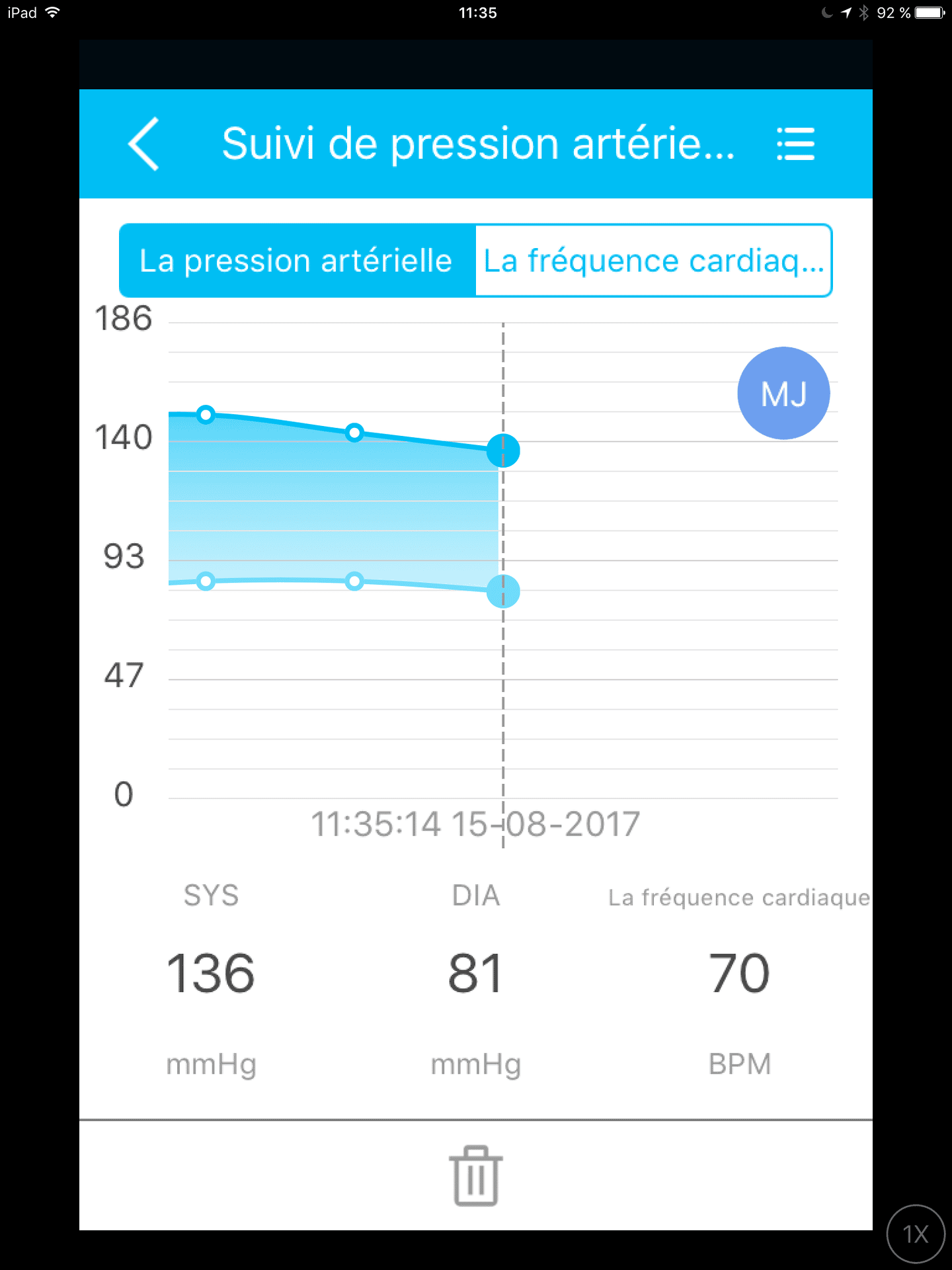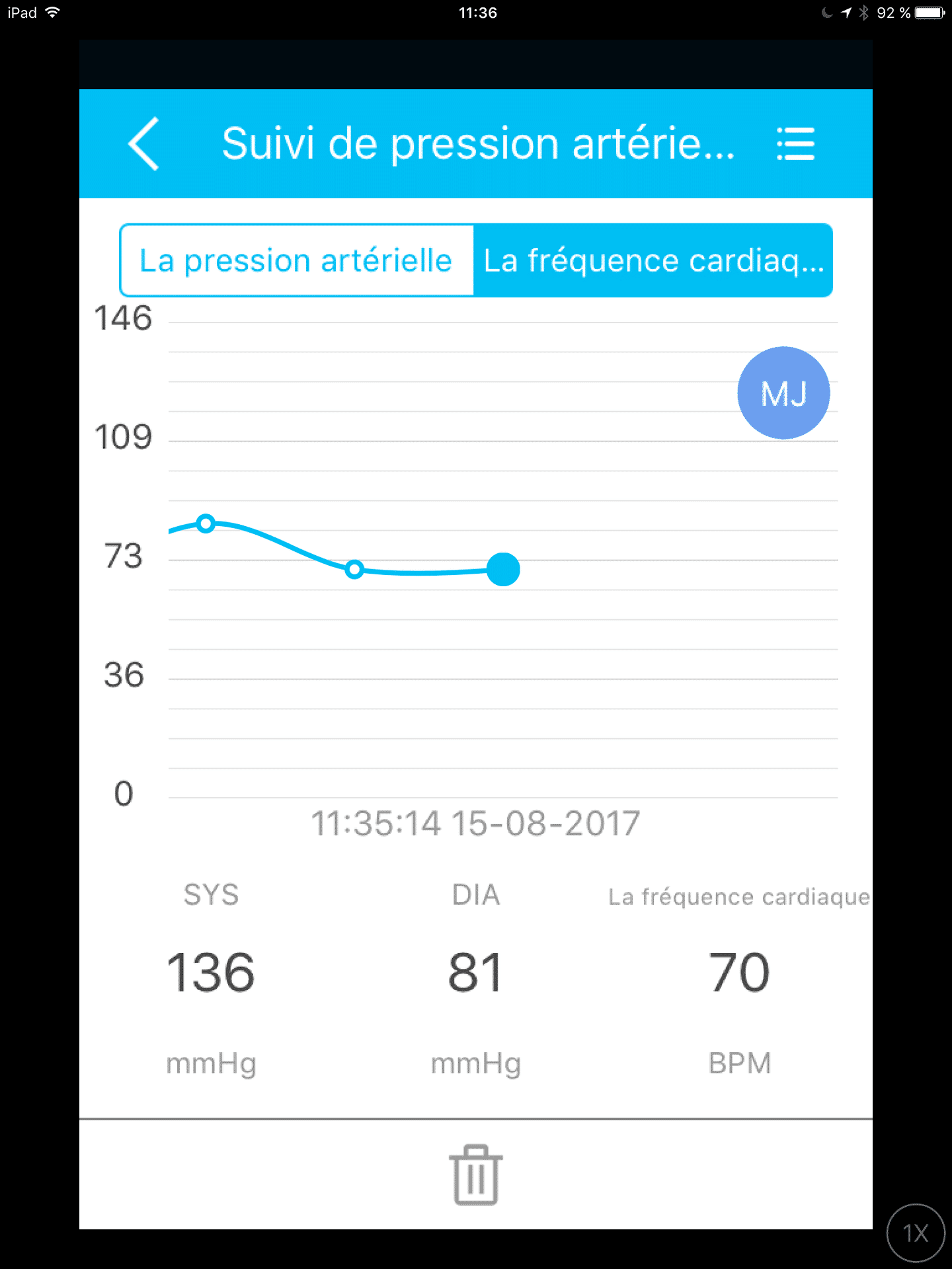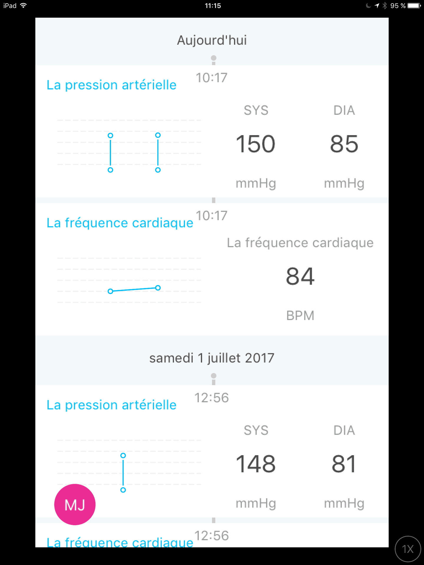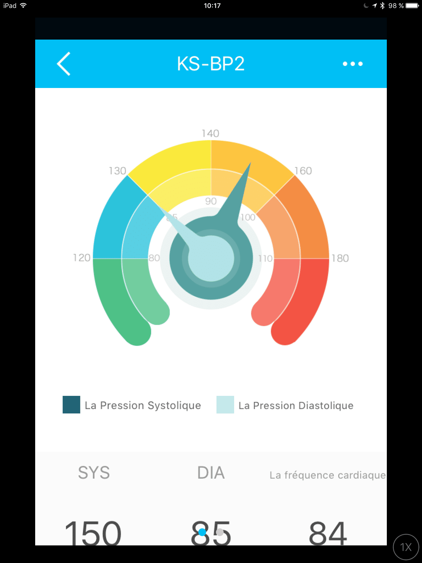 L’application enregistre l’ensemble des utilisations permettant ainsi de sortir différents graphiques pour étudier l’évolution de rythme cardiaque et de votre tension artérielle. Bien que très simple l’application n’est pas exempte de défaut. L’affichage n’est pas optimal sur une tablette. Je l’ai testé sur mon iPad Mini 2 hormis un simple zoom X2, il n’y a pas de possibilité d’afficher en plein écran. Second point noir l’application ne bénéficie pas d’une traduction complète. Comme vous pouvez le constater sur l’une des copies écrans ci-dessus.