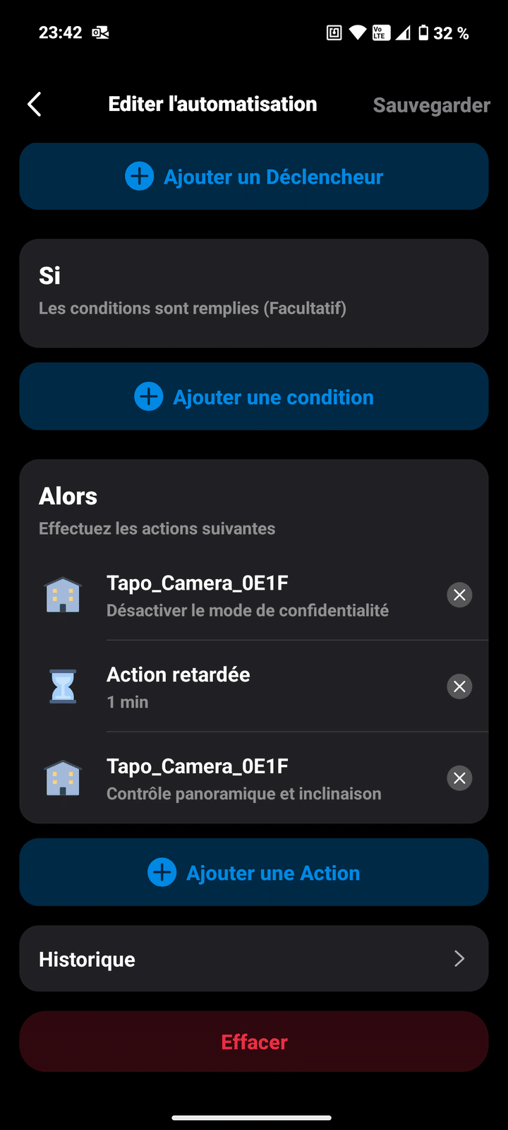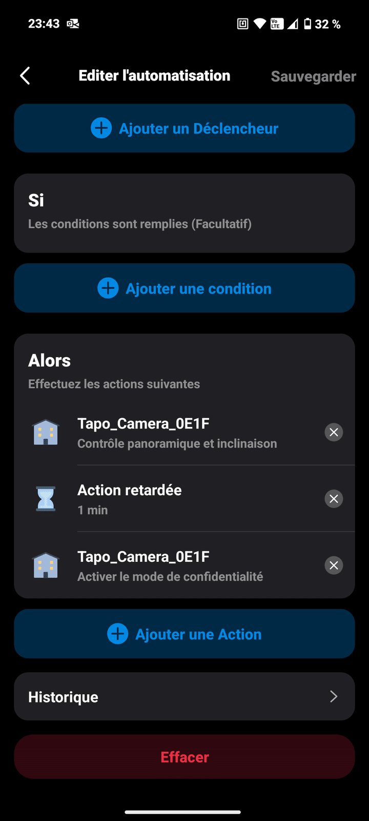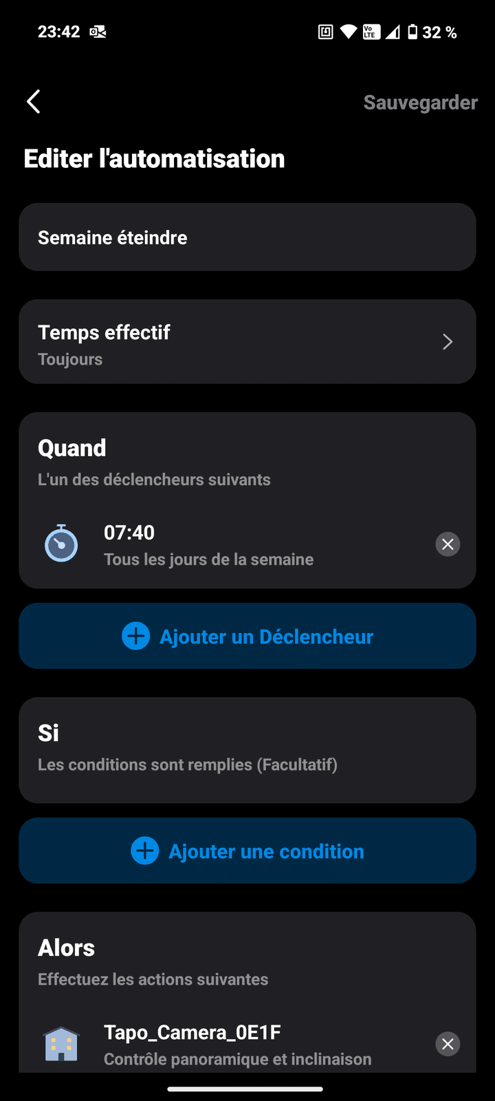 Une autre nouveauté intéressante est la compatibilité avec le Tapo H500 Hub, qui centralise les capteurs et automatismes : on peut, par exemple, activer une lumière connectée lorsque la caméra détecte un mouvement. Les possibilités ne sont pas infinies mais presque ou tout su moins ultra complètes pour ce type d’écosystème.
