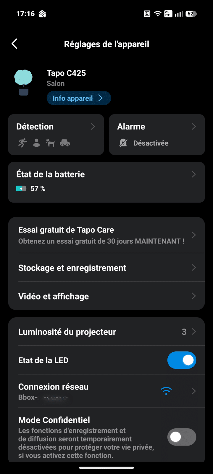 Enfin, le projecteur intégré est discret mais efficace. Il s’active automatiquement et apporte un éclairage suffisant pour dissuader. Comme d’habitude dans l’écosystème Tapo, tout est paramétrable