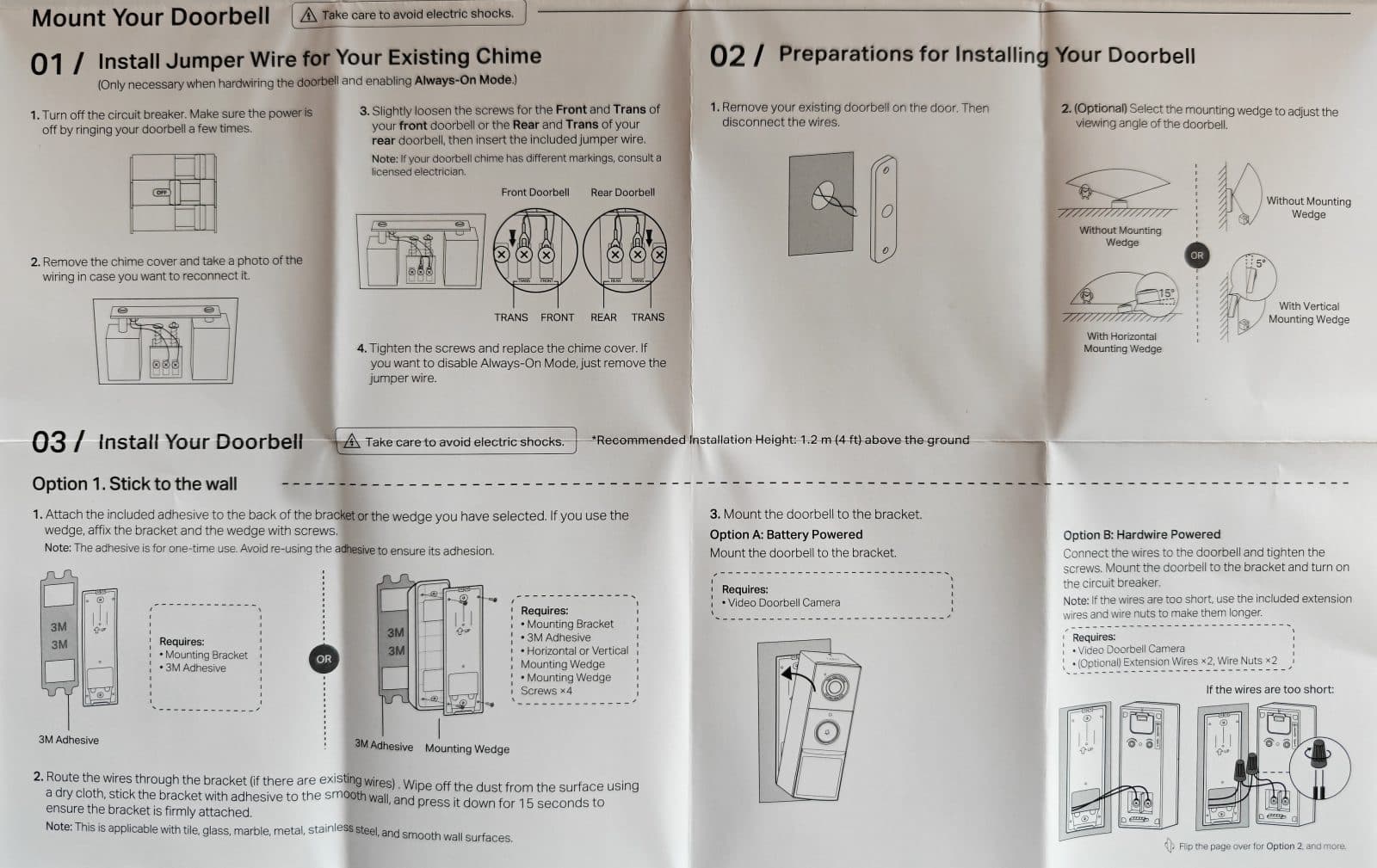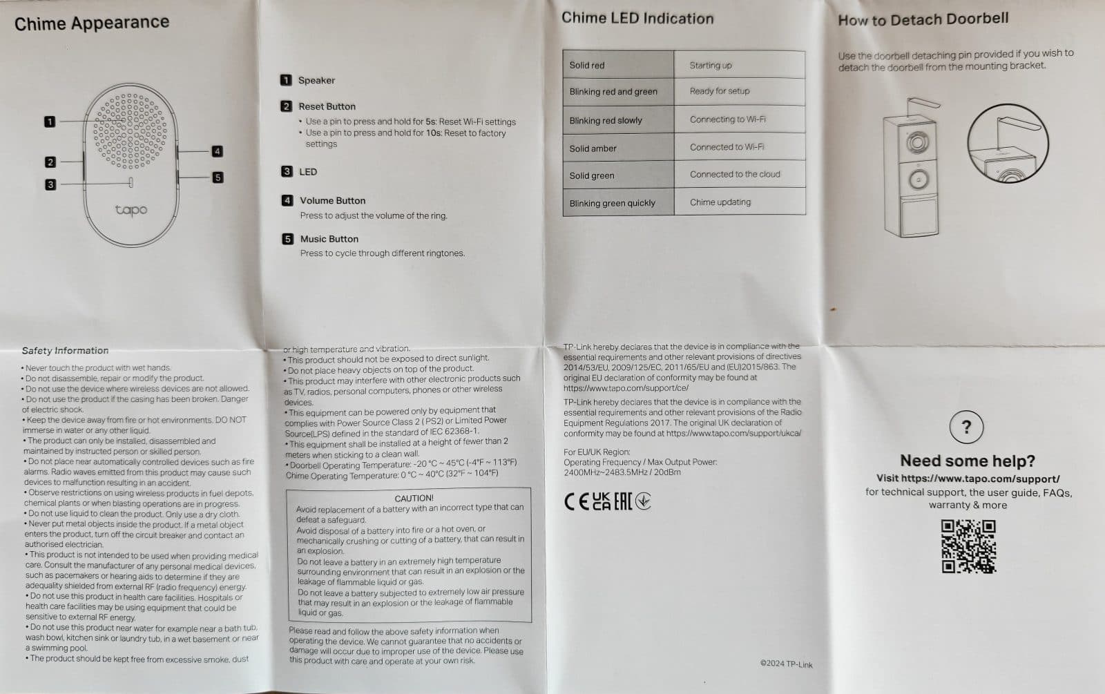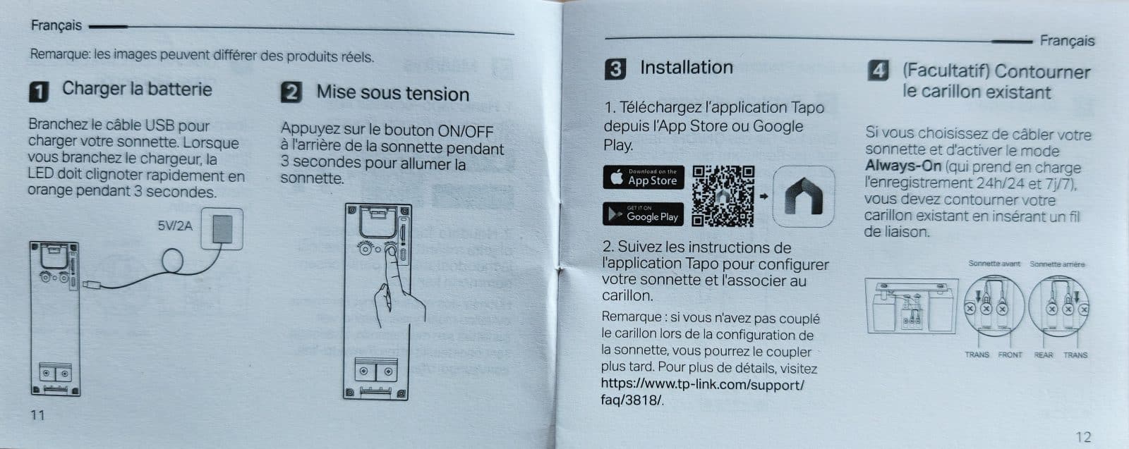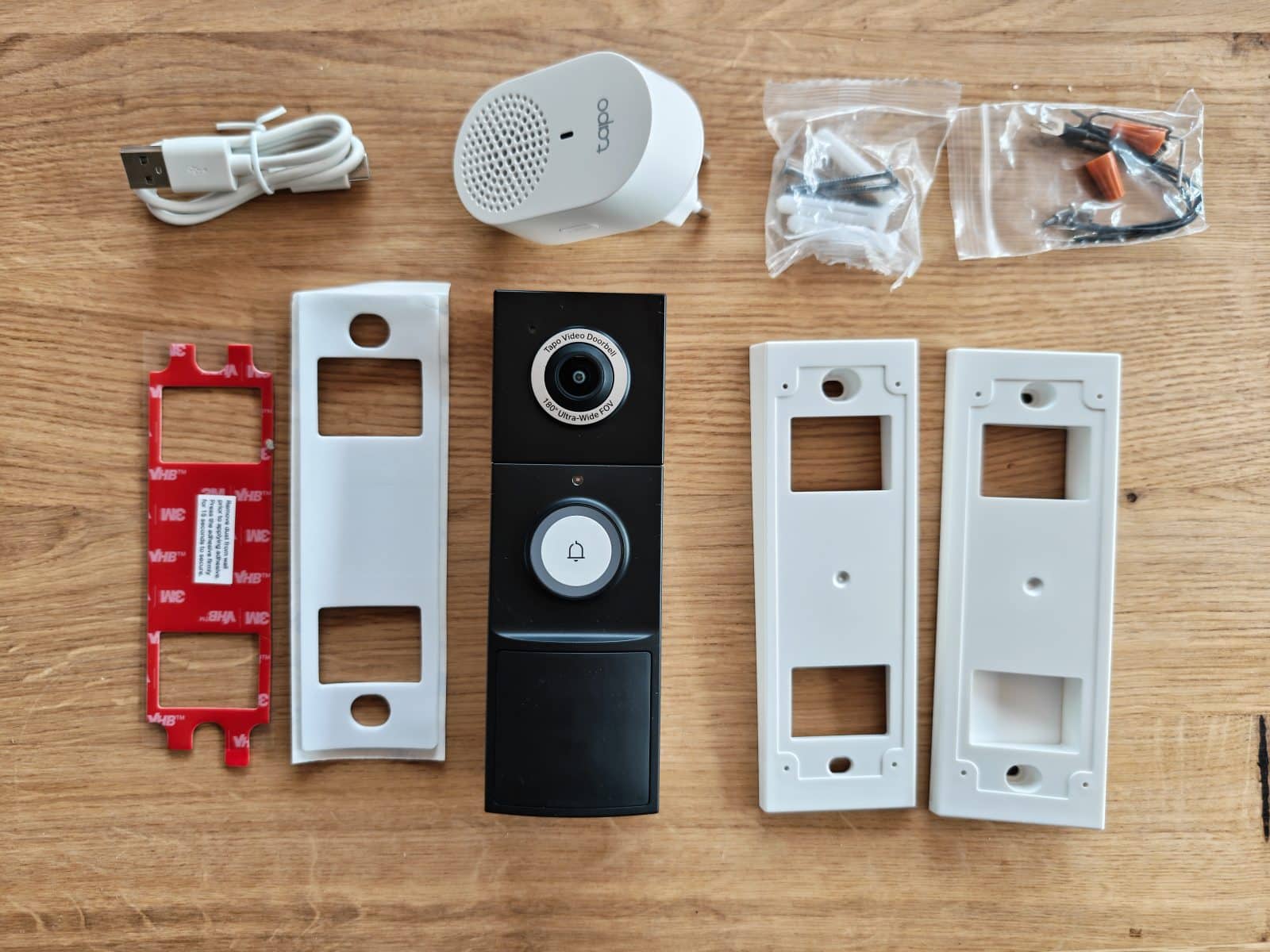 Dès l’ouverture de la boîte, on voit que TP-Link vise un public large. Le packaging est propre, sans fioritures. On trouve la sonnette, les supports de fixation, les vis, ainsi qu’un kit de montage mural. Ensuite, l’ensemble inspire confiance. Le plastique est solide, bien fini, et surtout, il ne fait pas cheap. Contrairement à certains modèles d’entrée de gamme, ici tout est bien ajusté.