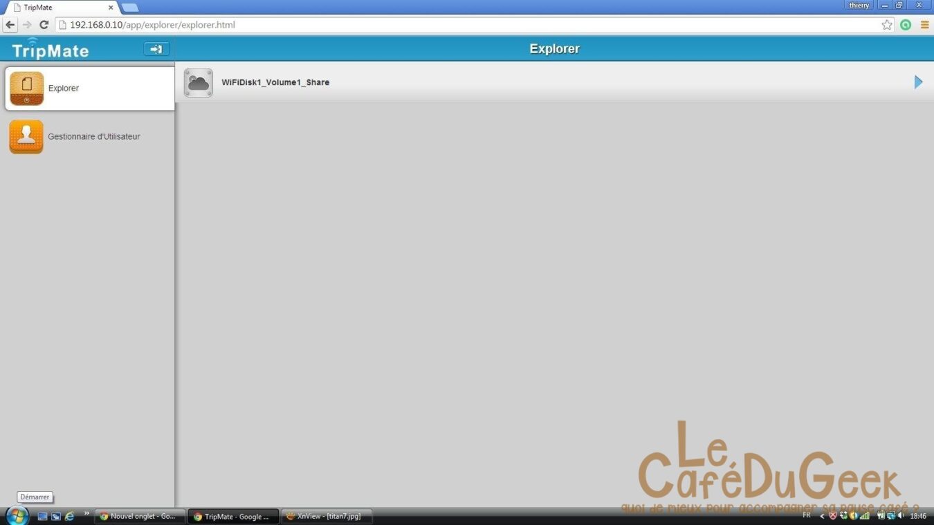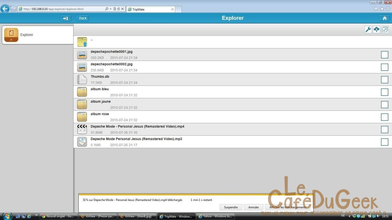 Dans l’interface d’administration, j’ai pu faire les réglages que je souhaitais. Pour la connexion à un autre réseau soit filaire ou Wi-Fi, changer le mot de passe, mettre à jour le firmware, etc. De plus au travers de l’interface j’ai pu accéder à l’explorer pour disposer des fichiers présent sur ma clé USB ou bien enregistrer ceux de mon PC vers la Clé. Une fois le paramétrage fait, voyons ce que donne l’utilisation.