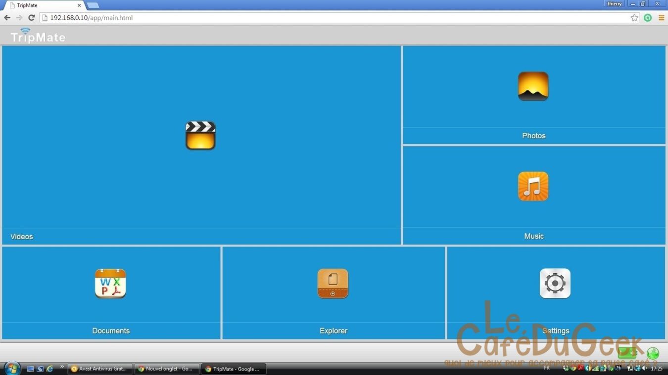 D’autre part, le TripMate Titan permet le partage de fichiers facilement sur le réseau local. L’utilité? En effet j’ai pu par exemple brancher un hub USB jusqu’à 4 entrées, avec des différents disques durs ou clés USB. Donc avec des films, des chansons, tous les appareils type ordinateurs, tablettes, smartphones, pourront regarder le film de leur choix séparément chacun, en étant connectés au Titan. Et on peut utiliser l’application HooToo TripMate Plus sur les appareils mobiles et directement l’application web sur ordinateurs.