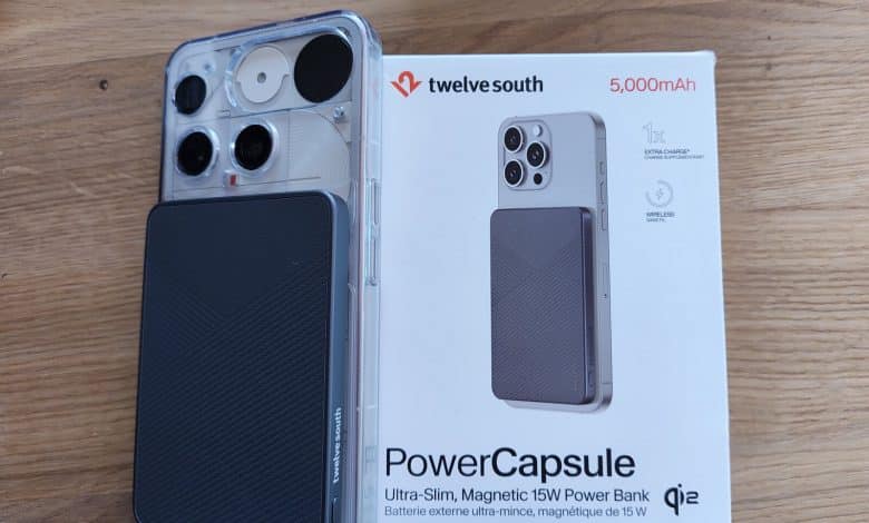 J’ai testé beaucoup de batteries magnétiques. La plupart finissent dans un tiroir après deux semaines, trop épaisses, trop laides ou trop lentes pour justifier leur présence permanente dans la poche. La PowerCapsule 5000 mAh de Twelve South m’a surpris dès la première manipulation. Ce n’est pas le genre de surprise liée à une fonctionnalité inédite. C’est celle du toucher, une surface structurée et bien ajustée, et une fixation magnétique qui claque proprement sur l’arrière du smartphone. La question est simple : est-ce une vraie bonne batterie, ou juste un bel objet qui cache une expérience décevante ?