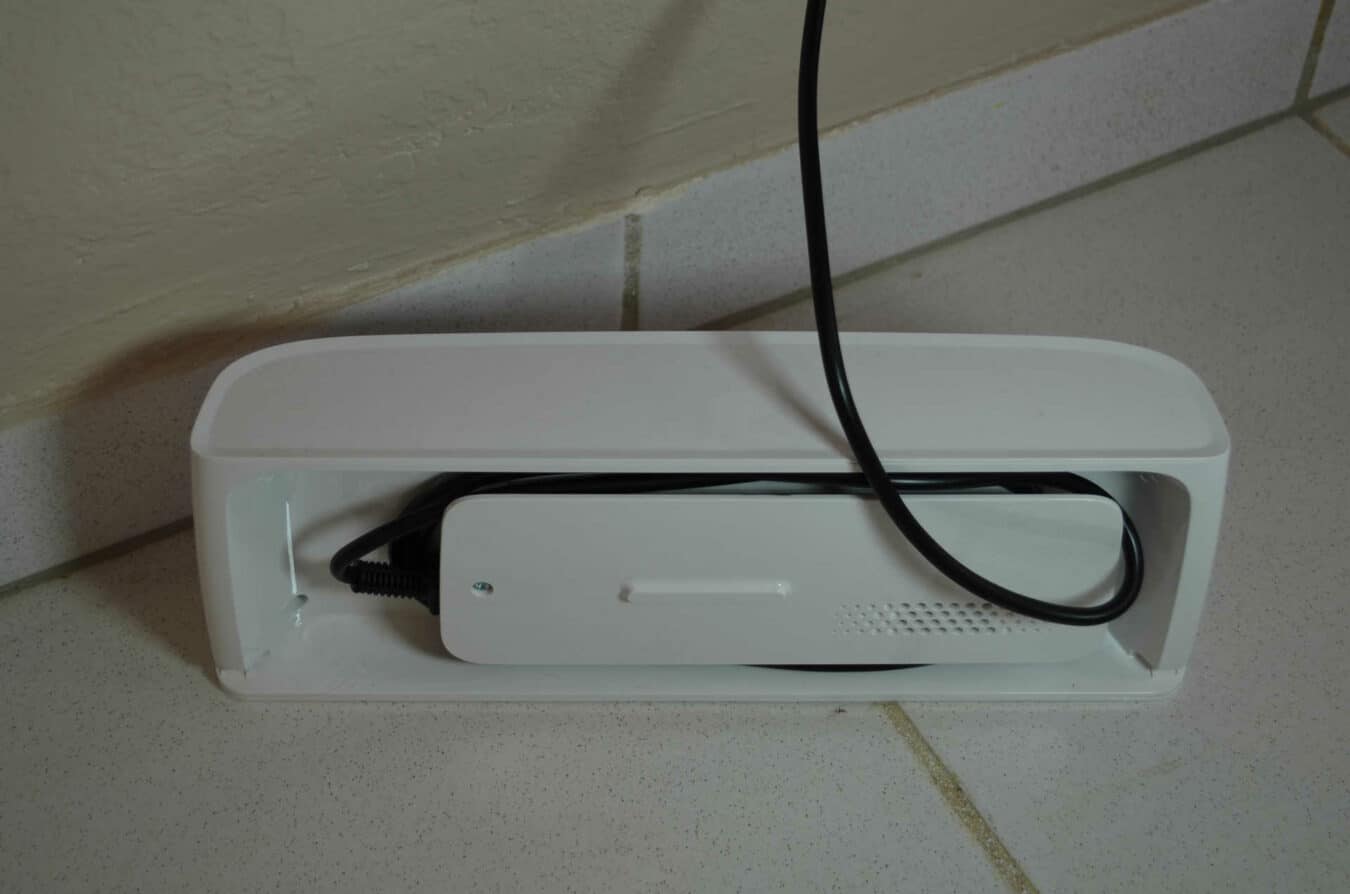 Comme nous le disions, le Kobold VR200 se recharge via sa base. En plus d’être pratique, cette base permettra de trouver une place au robot aspirateur et de se recharger n’importe quand pour être disponible à toute heure. Un enrouleur de câble est appliqué à l’arrière de la base, ce qui permet de ranger le surplus de câble et de le faire sortir dans le sens de son choix. Vorwerk présente un produit fini, jusqu’au plus petit détail, d’ailleurs on y retrouve les couleurs de l’aspirateur.
