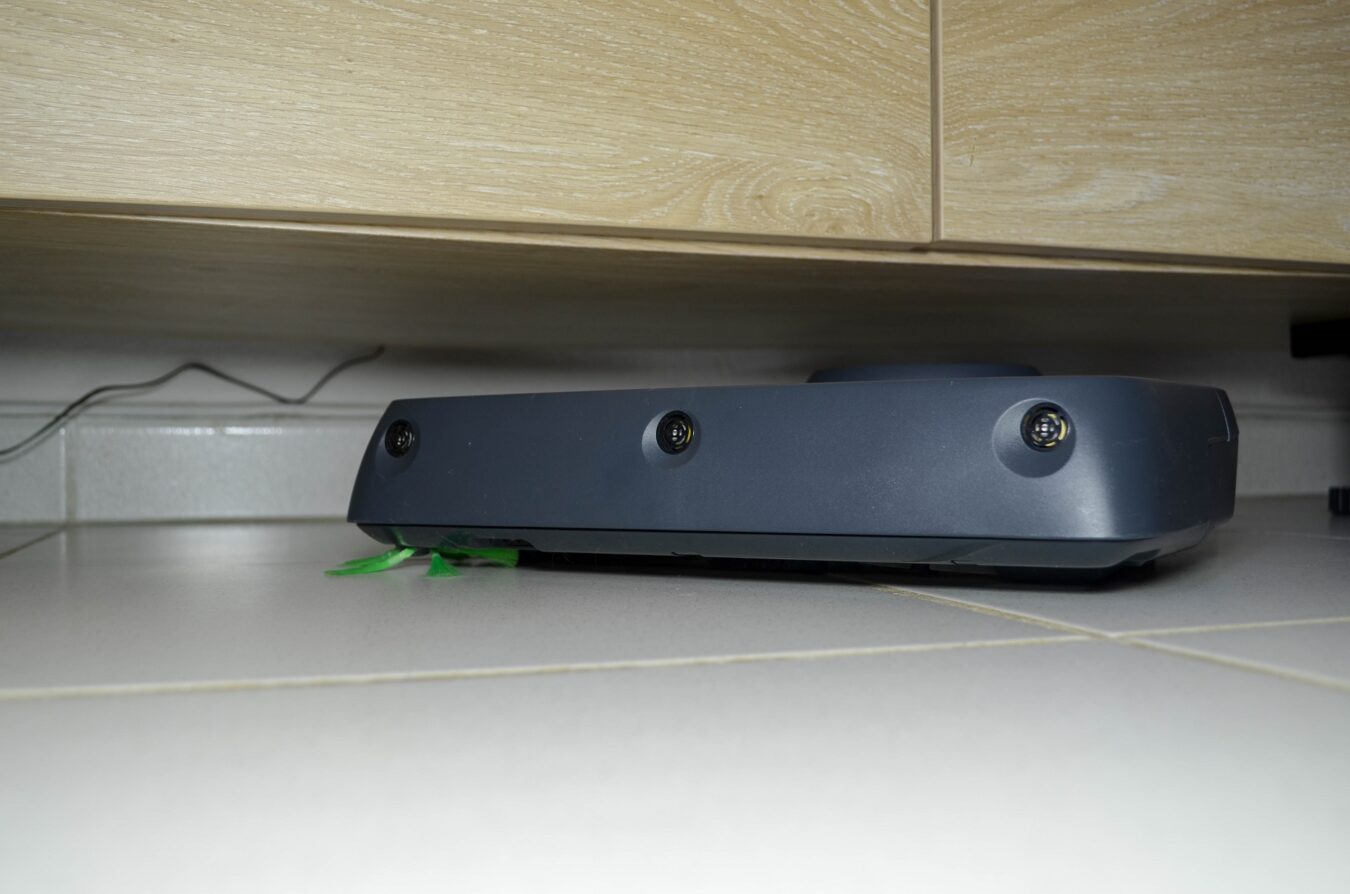 Passons aux choses sérieuses ! Nous allons commencer nos tests par sa mobilité. Grâce à sa petite taille (hauteur de 9cm seulement), le Kobold VR200 peut passer sous n’importe quel meuble et peut nettoyer tout type de surface ! Grâce à lui, j’ai pu nettoyer une surface inaccessible par mon aspirateur, un meuble bas mais aussi sous les lits. D’ailleurs, c’est un plaisir d’utiliser ce produit pour ce genre de meuble, c’est souvent le plus contraignant à faire et l’endroit le moins nettoyé de la maison. Passons à un autre sujet, les tapis ! Grâce à ses supers roues motrices, ou plutôt à son système de roues articulées et crantées, il peut forcer/s’accrocher pour franchir un obstacle. Il n’y a pas une situation où le robot s’est bloqué, car s’il trouve un obstacle trop haut, il bénéficie d’un système d’aide à la montée de 2cm. Par contre, il faudra s’attendre à des choses paranormales. Enfin plus précisément des objets qui auront perdu leur place d’origine, il suffira simplement de les remettre à leur place. On aurait aimé une meilleure précision des obstacles, bien que le robot soit l’un des meilleurs sur le marché, surtout dans une situation « rideau » ou lorsque la machine s’entête à réaliser une tache où elle n’aura pas le dernier mot. Mais comparé aux concurrents, on peut clairement afficher le Kobold VR200 comme l’un des meilleurs robot-aspirateur.