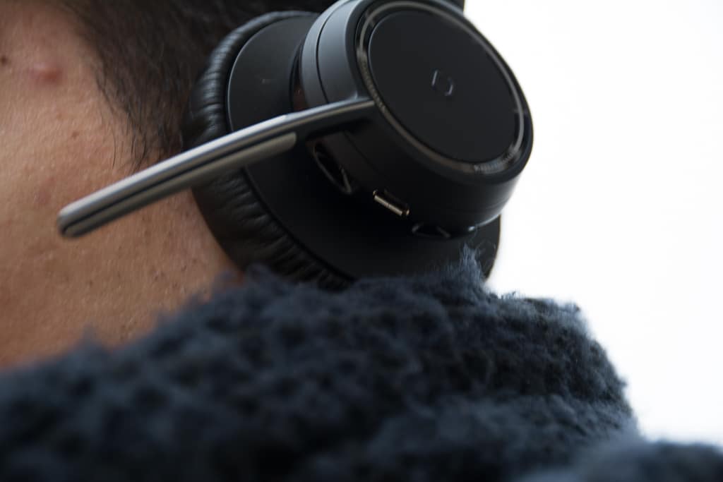 Ce modèle intègre une annulation active du bruit (ANC) qui a pour but de réduire le bruit de l’environnement alentour lors de l’écoute. Selon nous, l’ANC n’est pas exceptionnelle sur ce Voyager Focus UC, cette fonction n’est pas aussi efficace que chez Bose par exemple. Cela fera l’affaire au bureau ou dans la rue pour atténuer légèrement le bruit d’ambiance.