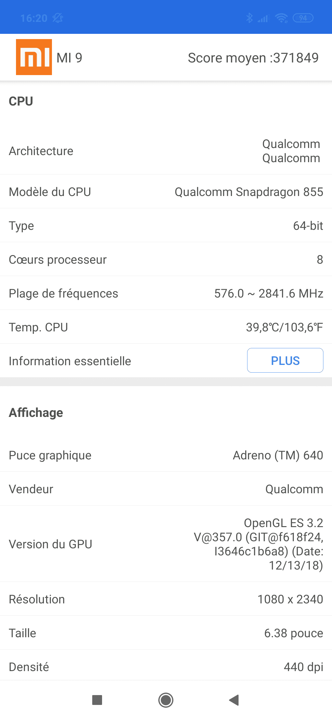 - Processeur : Qualcomm Snapdragon 855 Octo-Core cadencé à 2.84 GHz