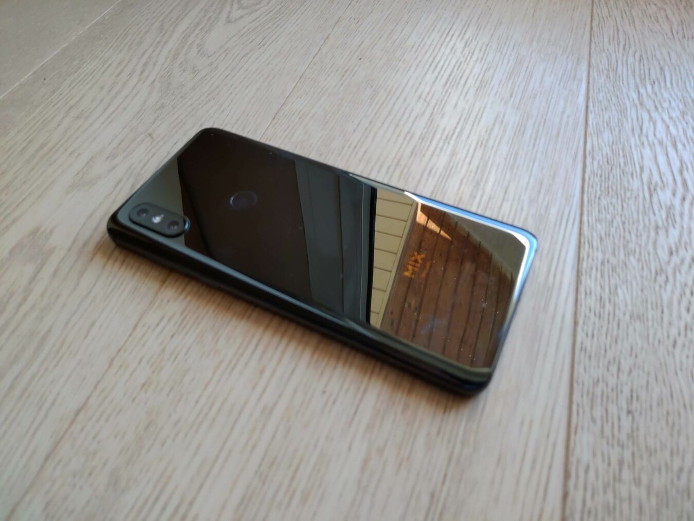 Le smartphone dispose d’un dos en verre permettant la recharge sans fil. En revanche, celle-ci pose le problème de traces de doigts. On retrouve sur celui-ci l’inscription « MIX by Xiaomi » écrite en dorée. Celle-ci renvoie un effet très classe et élégant montrant à quelle gamme ce smartphone appartient.