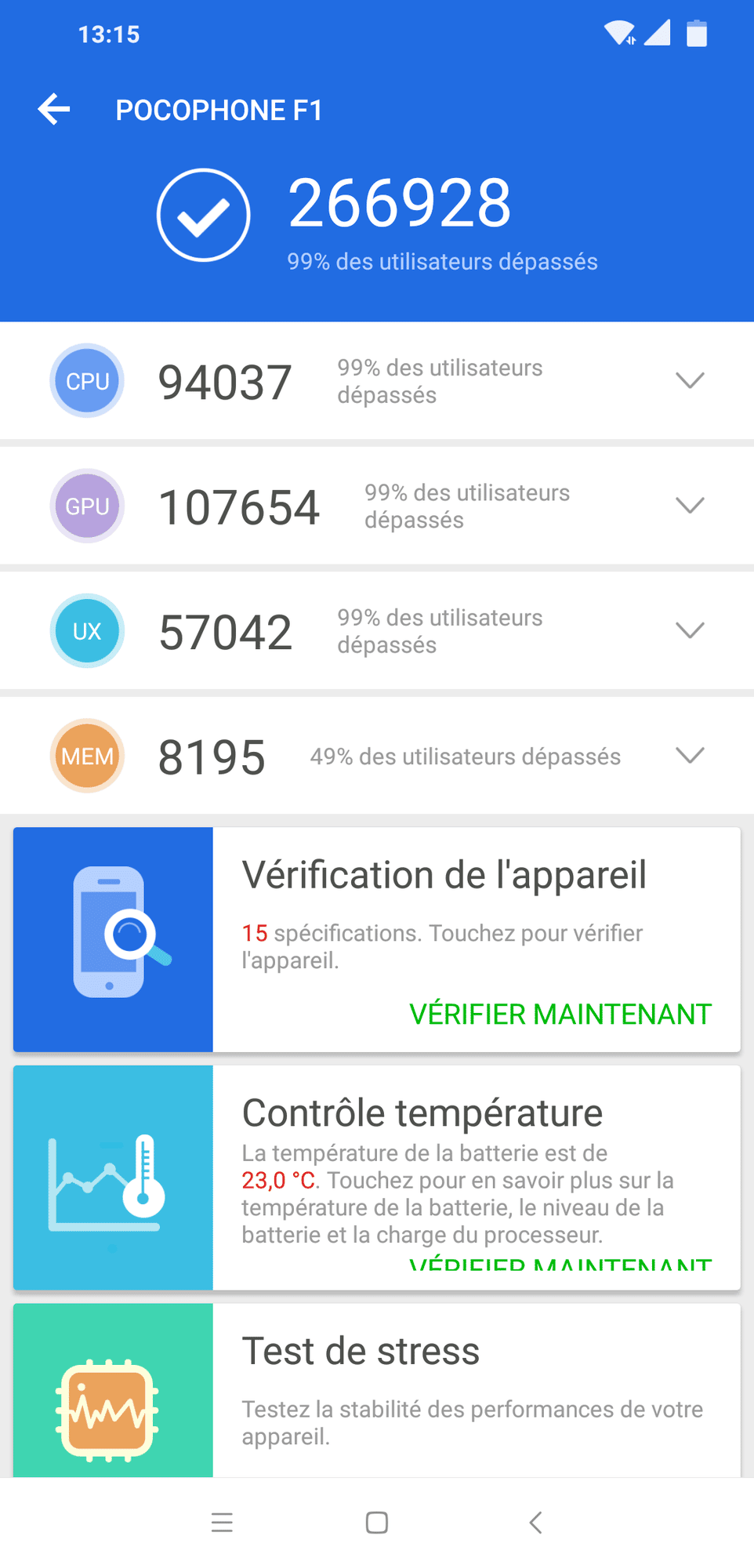 Le Poco Launcher utilise un tiroir d’application qui permet de trier par catégorie c’est plutôt pratique. Autre point positif, le téléphone possède multiple outil d’optimisation d’espaces, de mémoire vive ou de consommation en énergie. En quelques pressions, le téléphone est purgé.