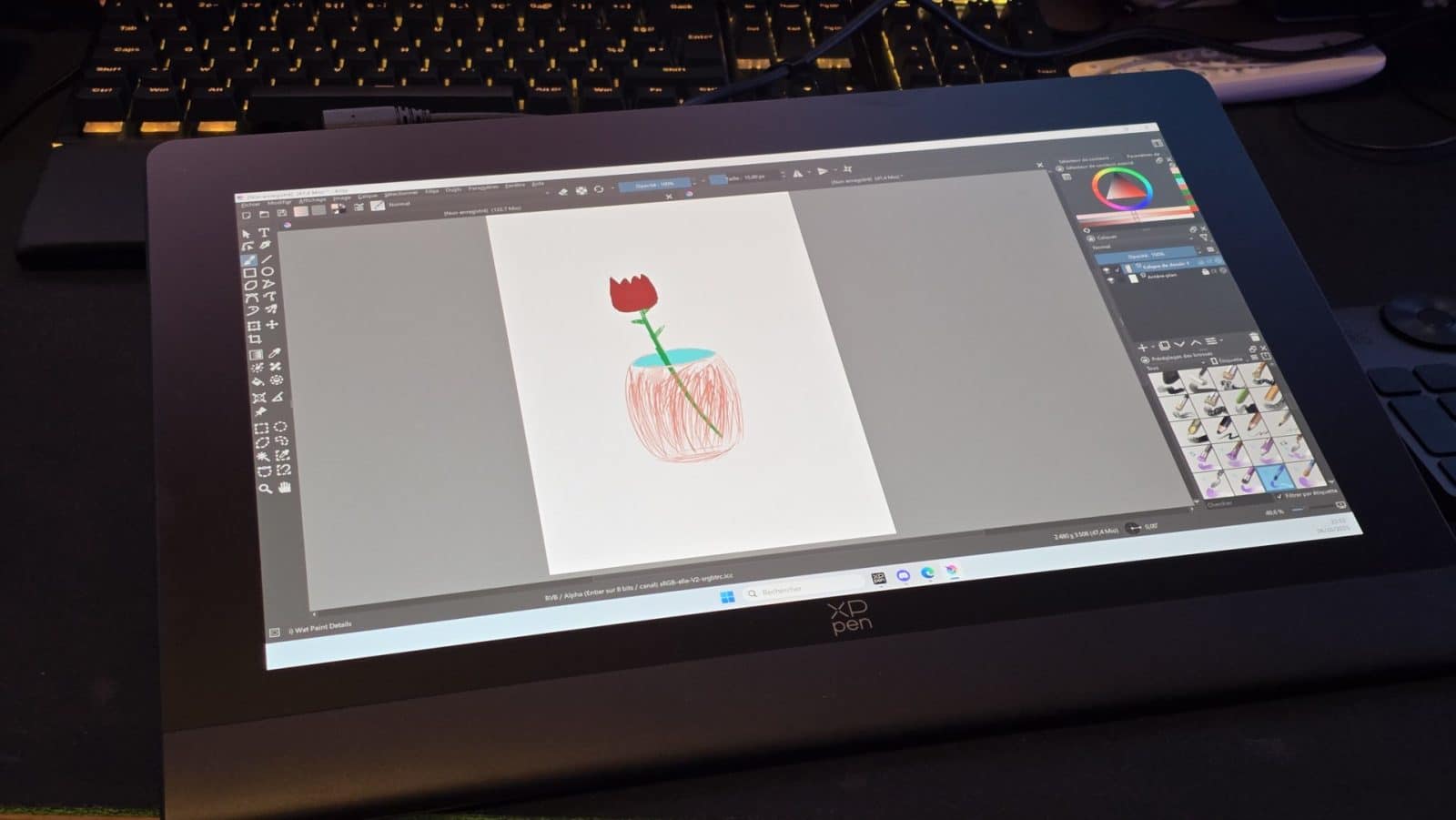 La XPPen Artist Ultra 16 est une réussite technique. Son écran OLED 4K affiche une image d’une clarté impressionnante. Les couleurs sont fidèles et profondes. Le tracé du stylet est d’une précision remarquable, sans latence perceptible. Même sans être illustrateur, on prend plaisir à expérimenter. Le ressenti est fluide, naturel, presque papier. L’ensemble inspire confiance par sa qualité et sa robustesse.