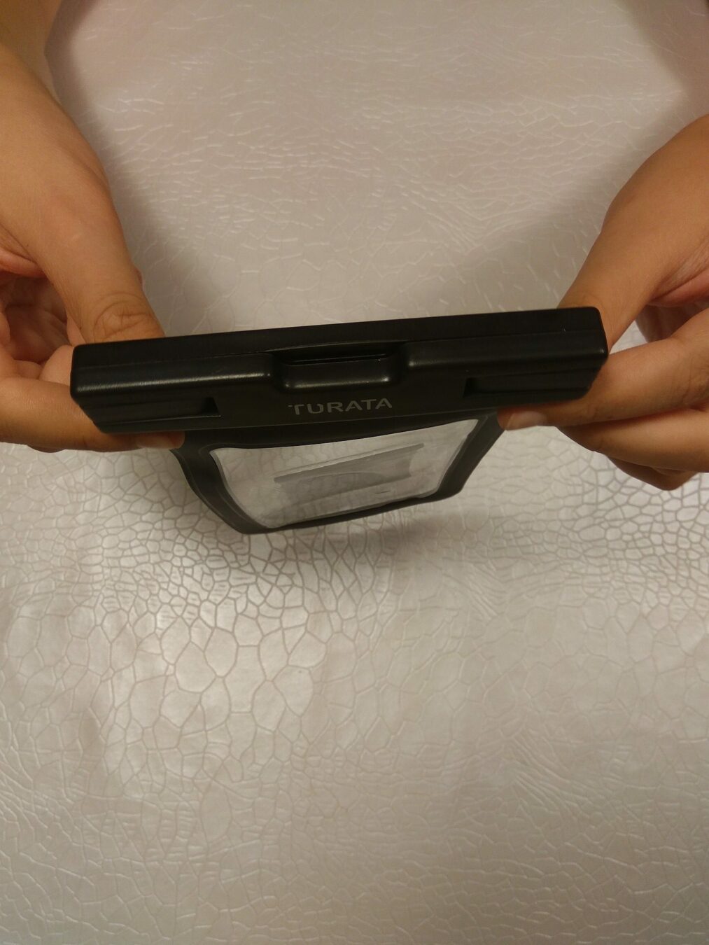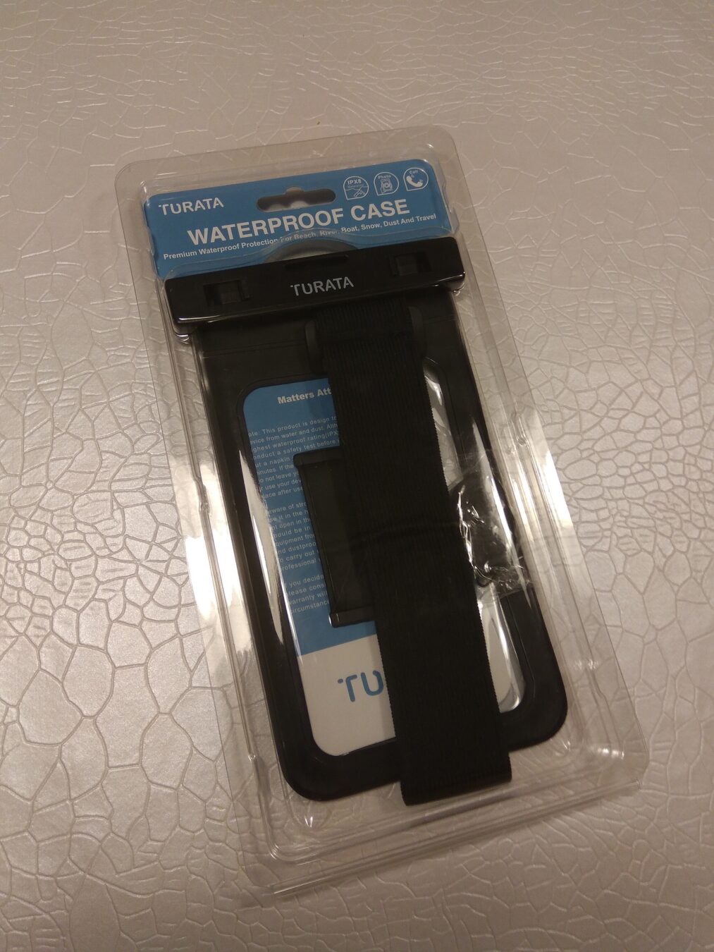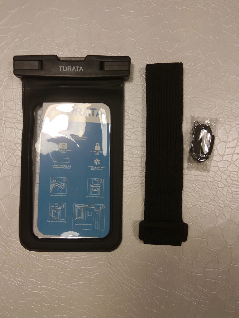 Je me suis donc empressée de commander cette housse étanche (waterproof case, TURATA) depuis leur boutique Amazon, pour la modique somme de 7€. À l’intérieur de mon colis, j’ai donc pu trouver la housse, une sangle assez large ainsi qu’une plus petite sangle pour accrocher autour de son poignet, ainsi qu’une légère notice d’utilisation.