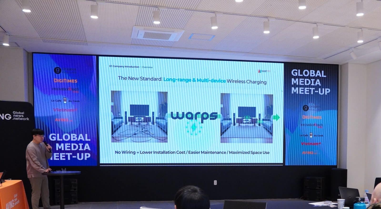 Lors du Global Media Meet-up à Séoul, organisé dans les bureaux d’Aving News, nous avons eu l’occasion de rencontrer plusieurs startups coréennes prometteuses en route pour le CES 2026. Parmi elles, WARP Solutions, une entreprise fondée en 2016 par Minsoo Kim, s’est démarquée avec une promesse audacieuse : éliminer les câbles grâce à une technologie de recharge sans fil à longue portée, fonctionnant comme un Wi-Fi de l’énergie. Rien que ça.
