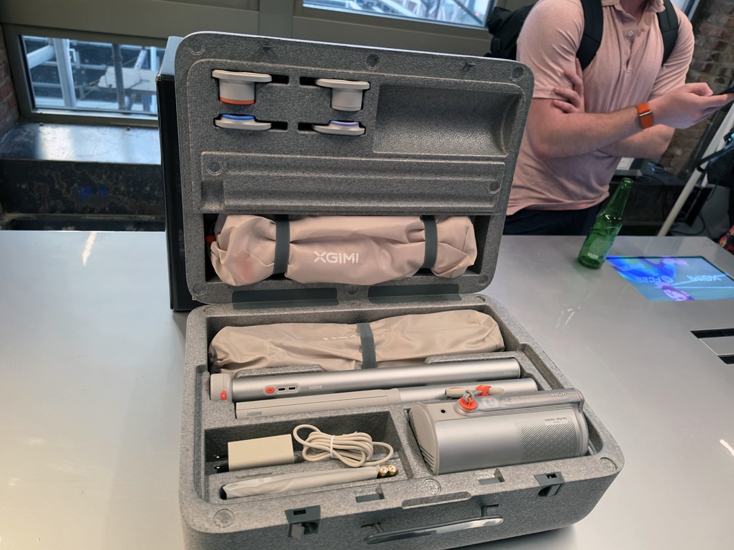 - Un kit Match Day exclusif XGIMI x FC 26, celui en photo ci-dessus avec malette de transport, support et écran avec le vidéoprojecteur.